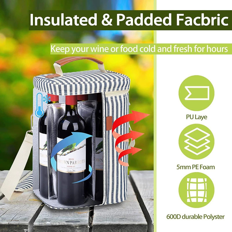 厂家可印LOGO旅行装酒袋便携式调节肩带可装4瓶红酒防水涤纶酒袋