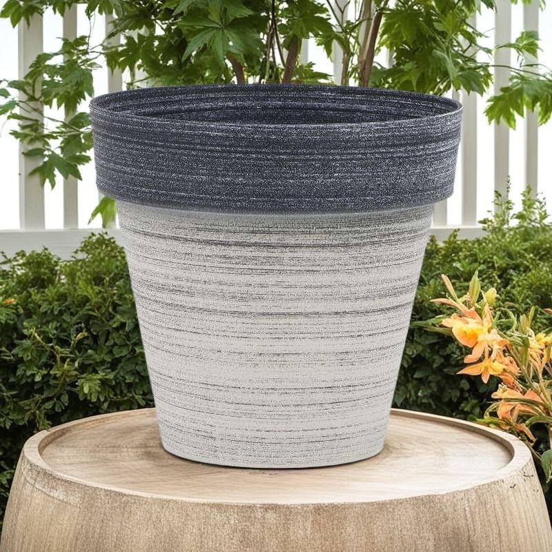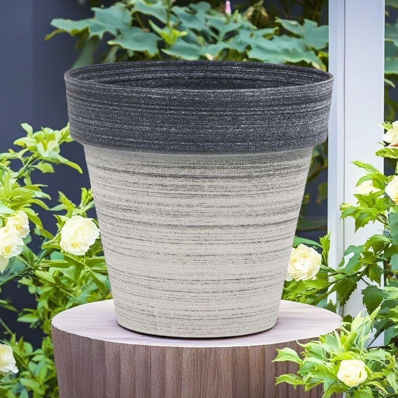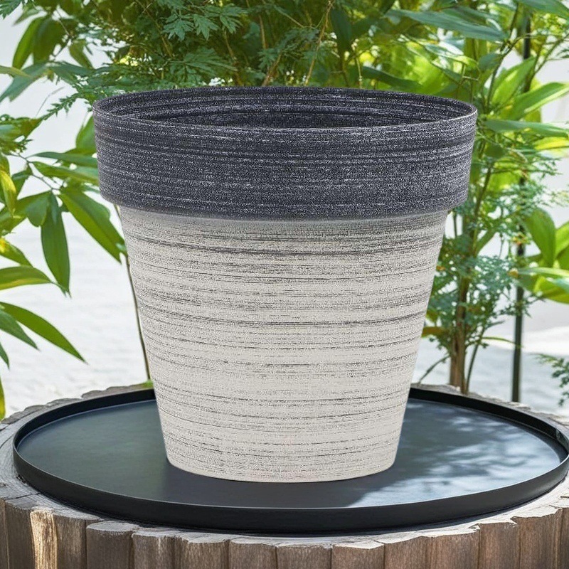 圆形大号北欧风双色条纹仿陶瓷花盆绿植的时尚栽种花盆