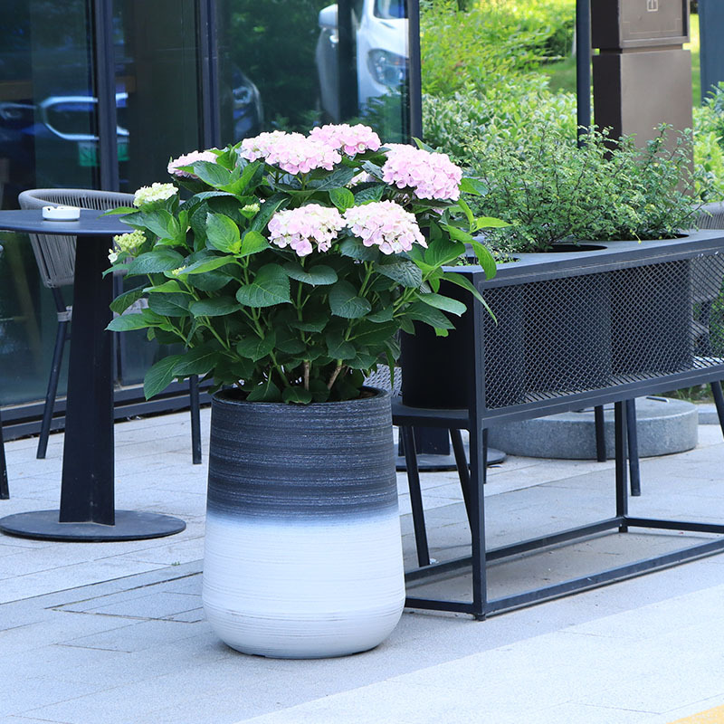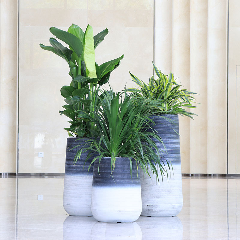北欧花盆圆形现代落地花瓶大口径仿真花摆件客厅别墅庭院大花盆