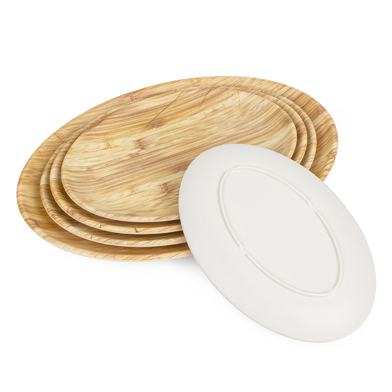 仿木纹密胺餐具酒店餐厅冷艺摆盘宴席鱼盘烧烤椭圆形盘火锅菜盘子