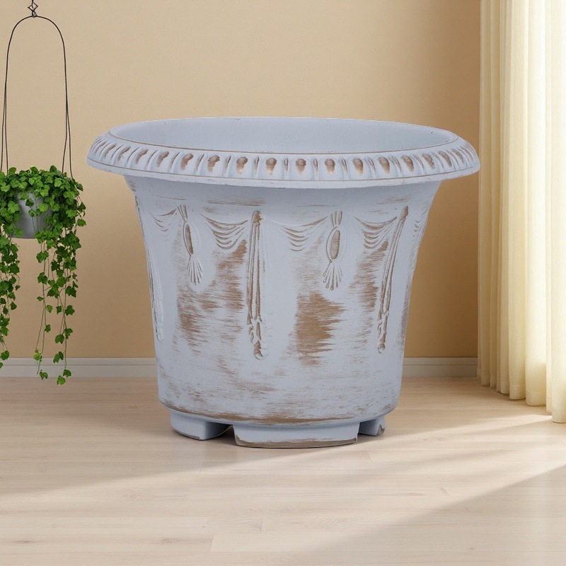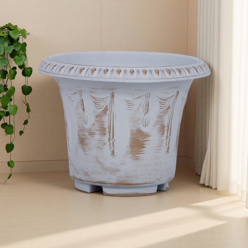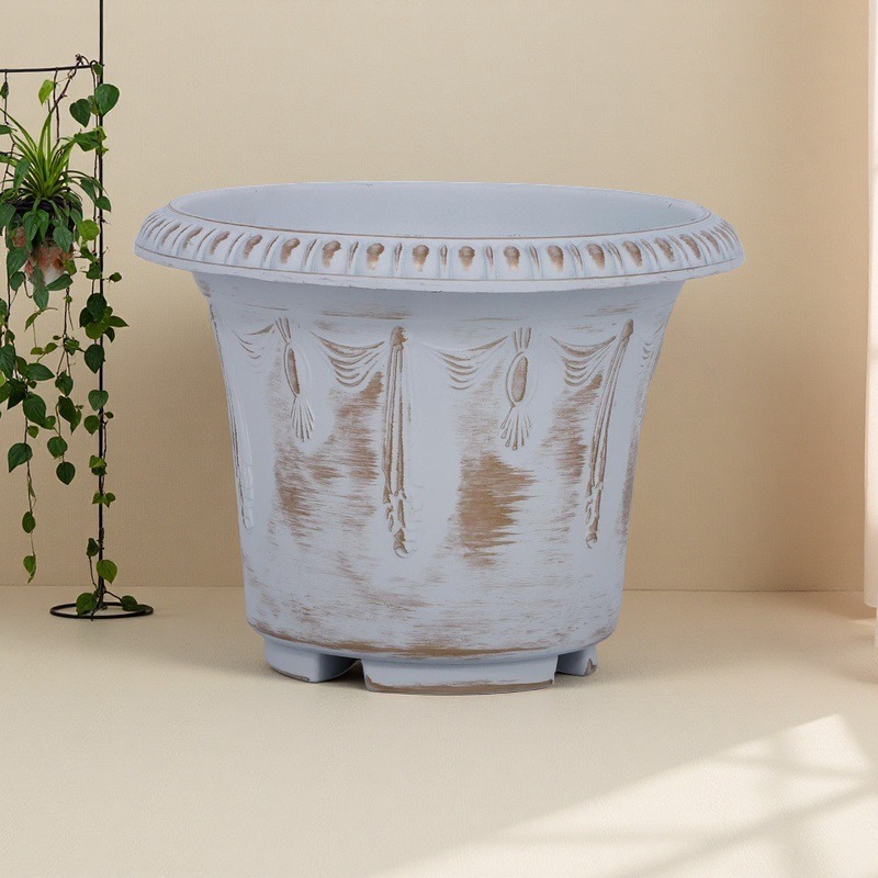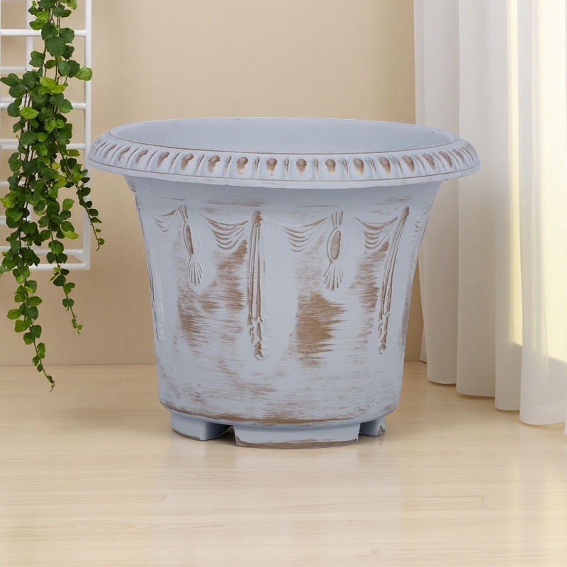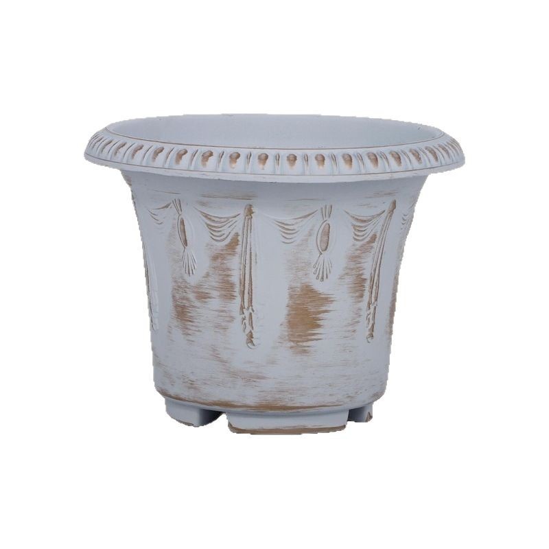 复古大口做旧古铜色塑料花盆鲜花绿植园艺盆栽古典花纹家用花器