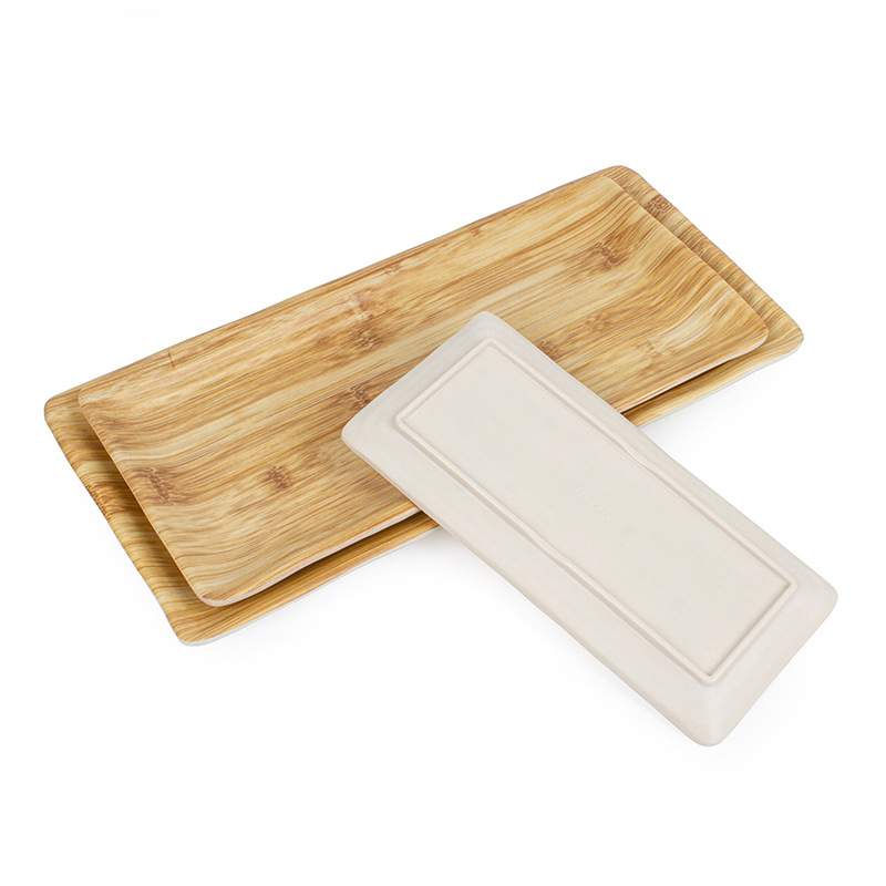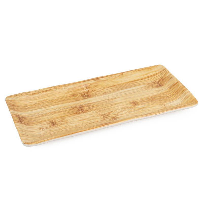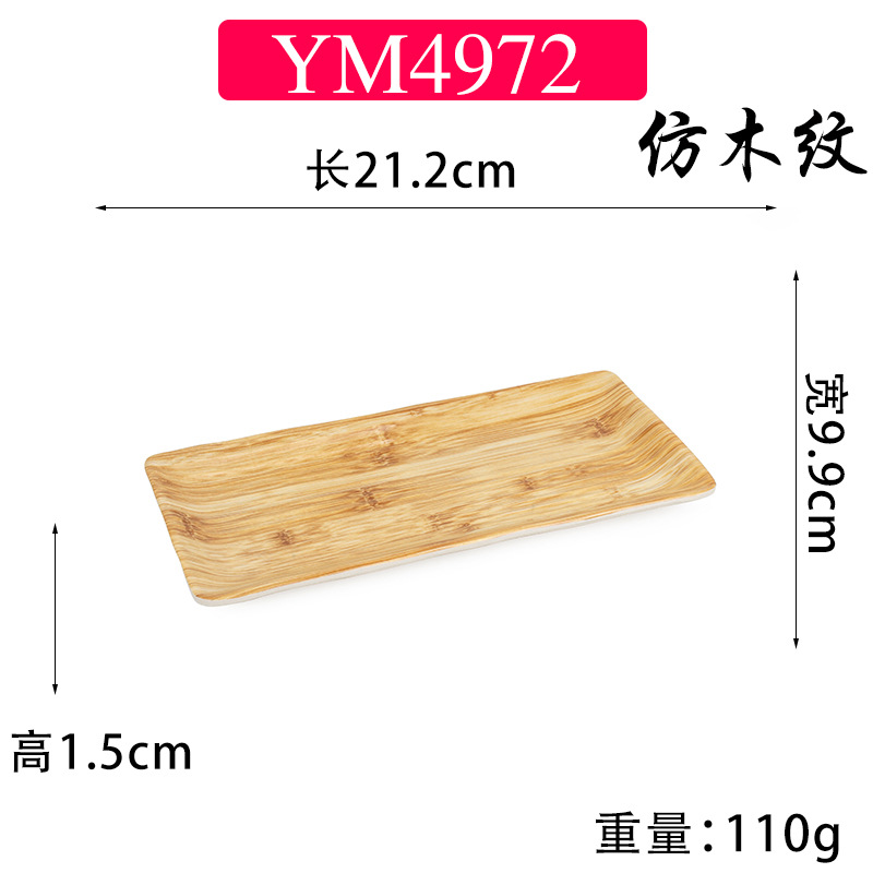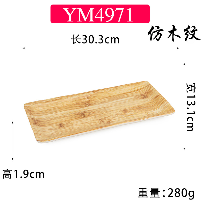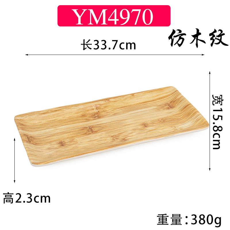 仿木纹密胺日式长条盘烧烤盘创意仿瓷火锅菜盘长方形盘小吃盘商用