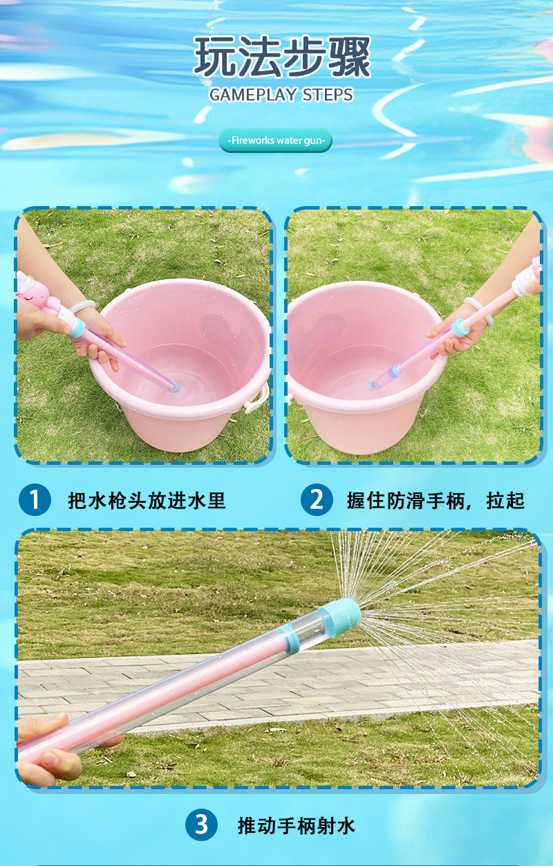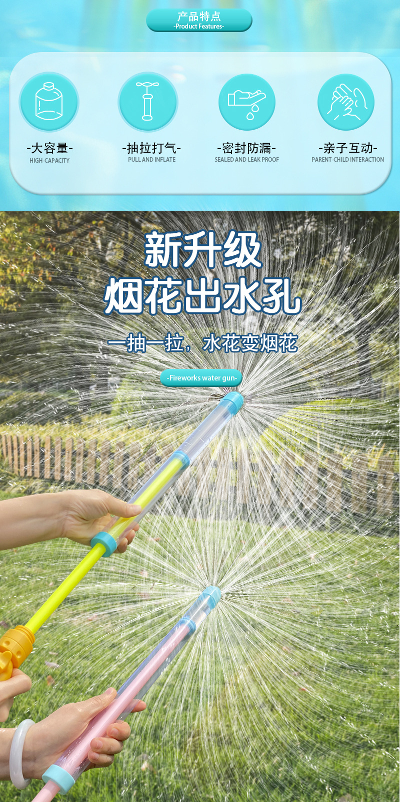 网红烟花水枪玩具儿童发射水炮打水仗喷水枪漂流抽拉式滋水枪男孩