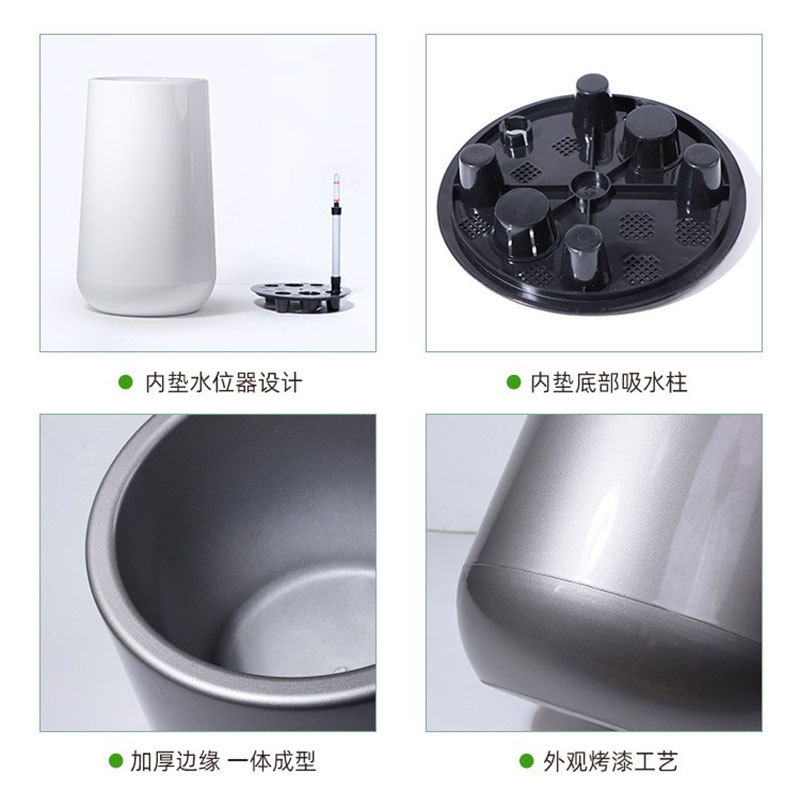 工厂直供自吸水花盆 圆形高筒落地客厅大号塑料自吸水花盆 批发