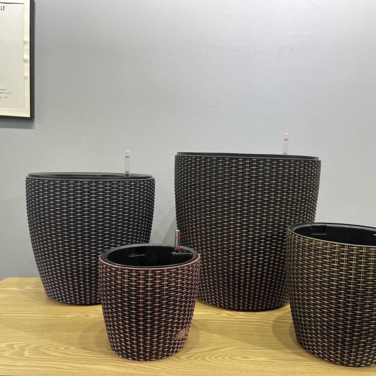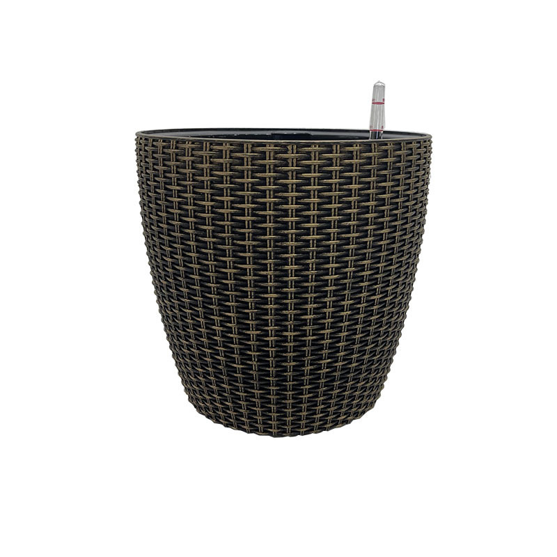 工厂花盆大号仿藤编花盆圆形大号客厅盆栽自吸水盆仿藤编花盆批发