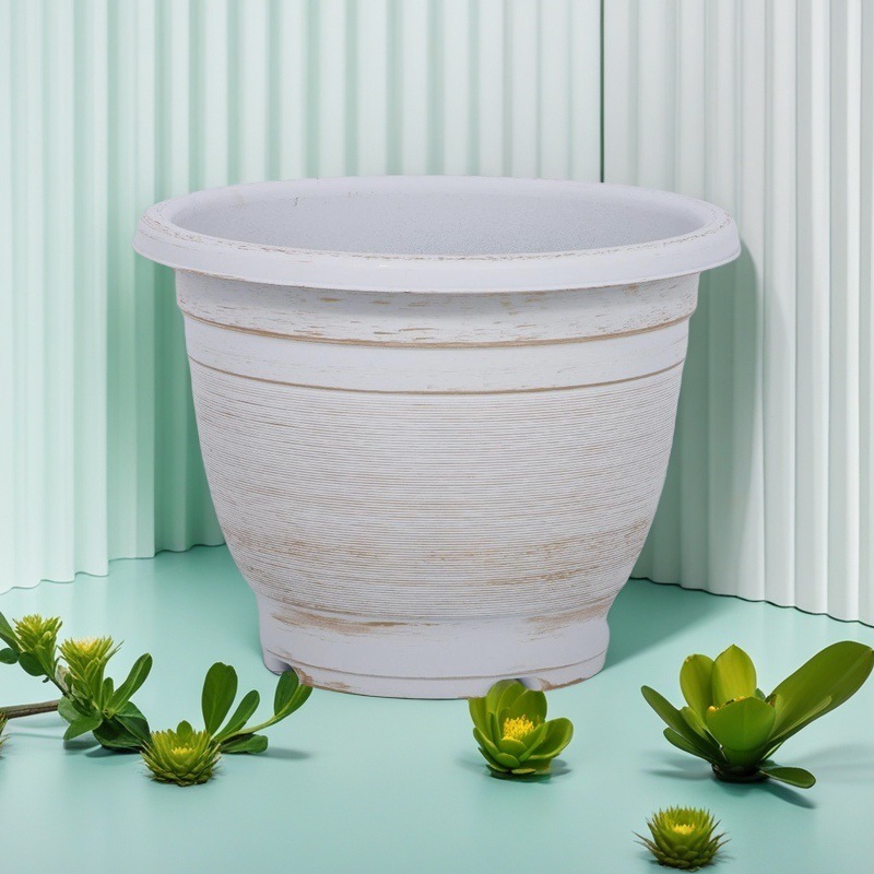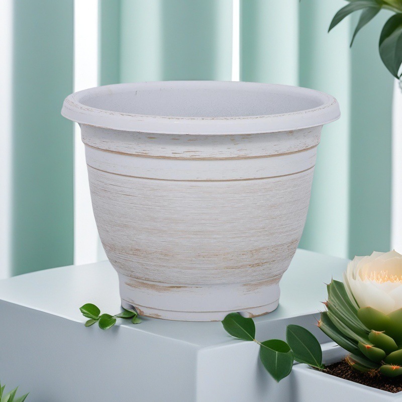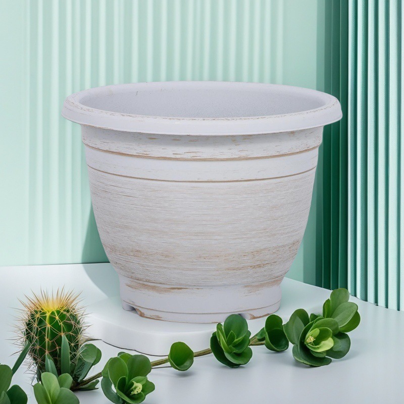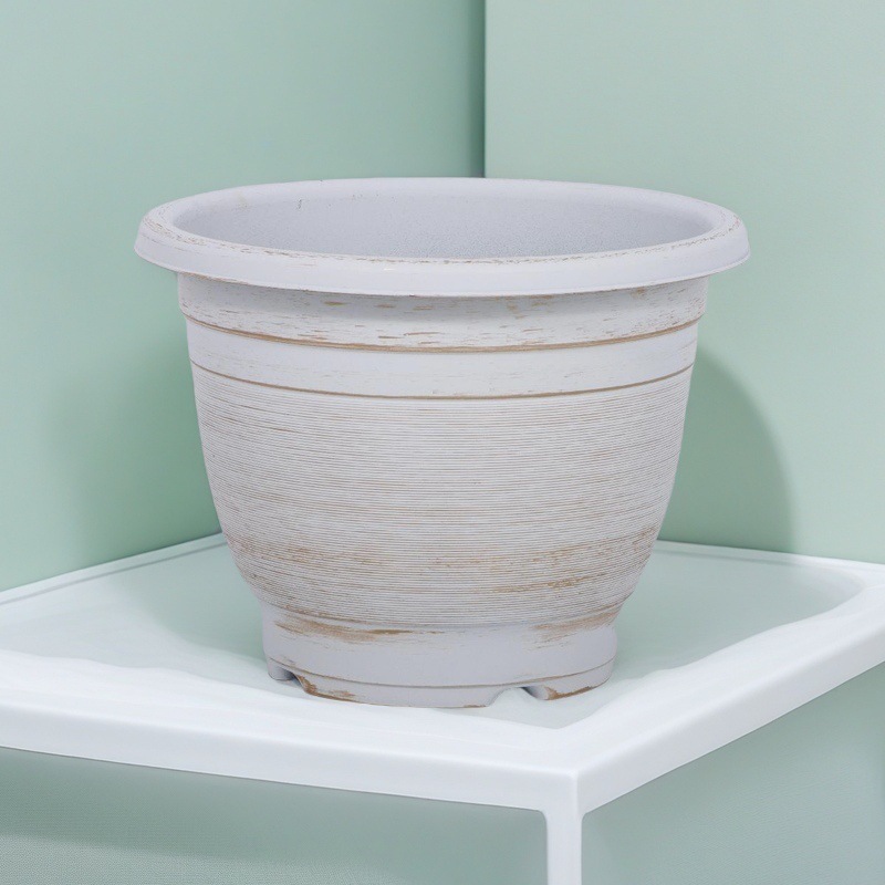 工厂直供简约圆形无孔细螺纹花盆塑料盆栽绿植塑料花盆批发