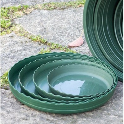 工厂直供绿色托盘 圆形花边加厚多规格塑料加仑盆绿色托盘 批发