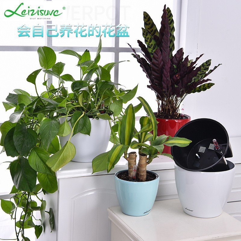 工厂直供自吸水花盆 圆形绿萝烤漆迷你简约懒人自吸水花盆 批发