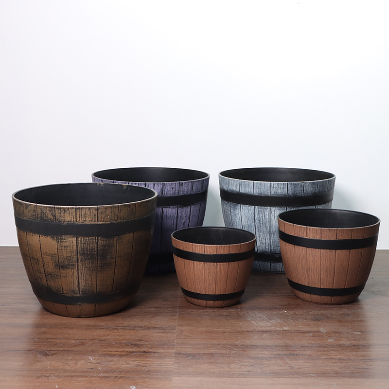 工厂直供荷花盆 圆形塑料花盆懒人花盆仿木盆庭院阳台荷花盆 批发