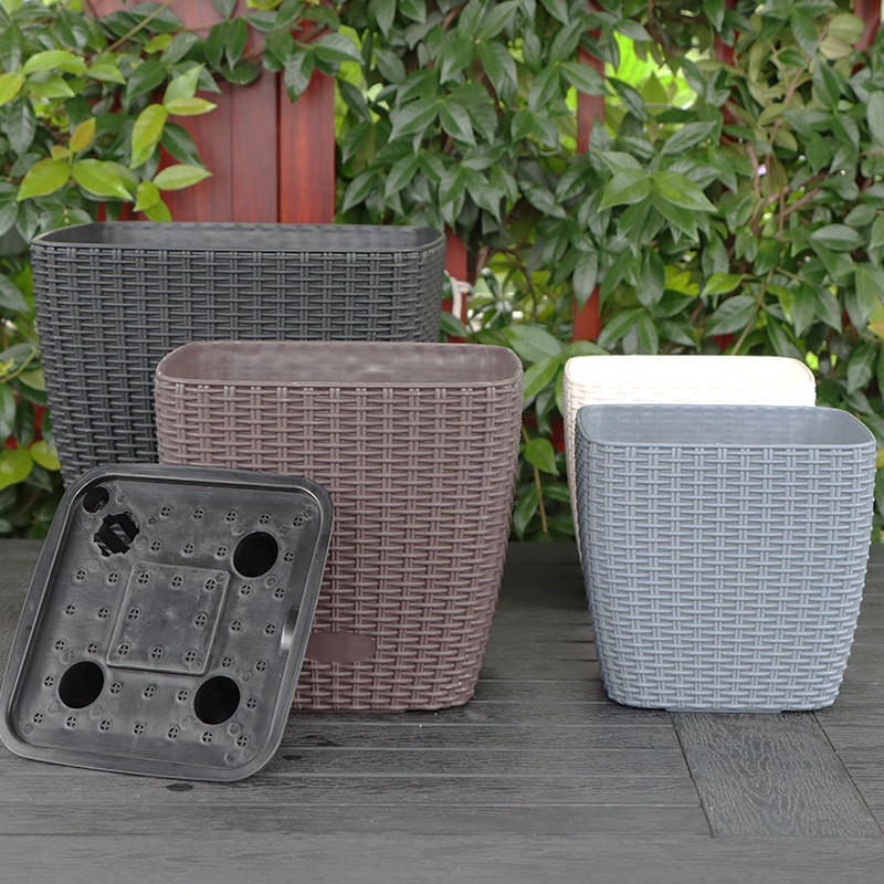 工厂直供方形花盆 大号方形仿藤编自吸水花盆塑料方形花盆 批发