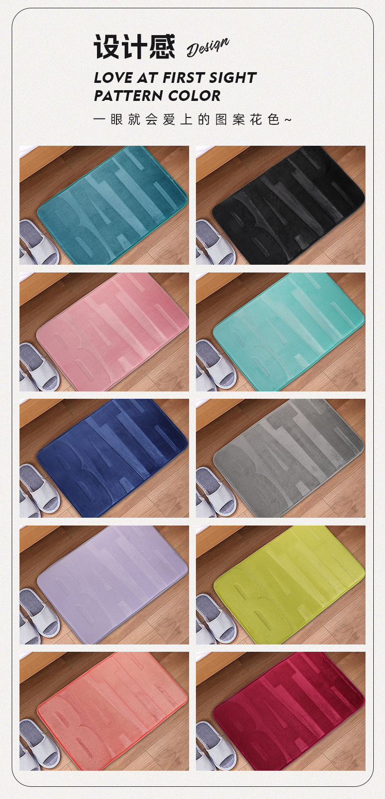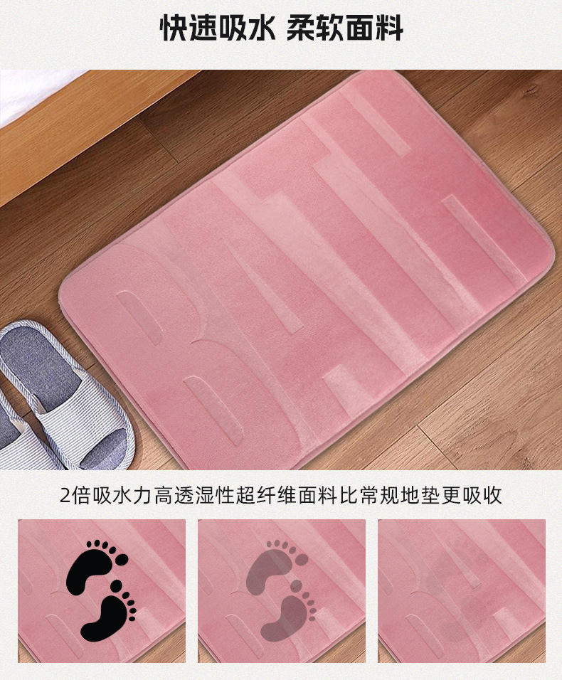 新款入户进门脚垫加厚吸水法兰绒压花地毯卫生间浴室厨房阳台防滑