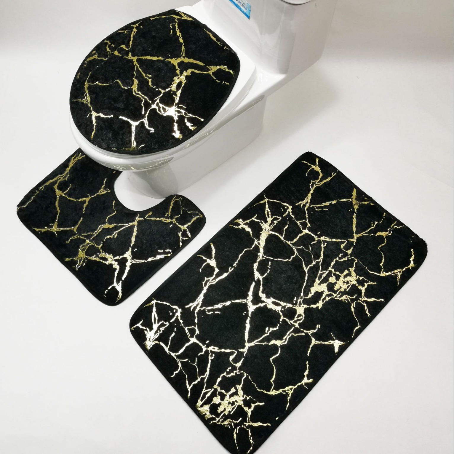 外贸地毯法兰绒跨境马桶卫浴三件套地垫浴室条纹三件套