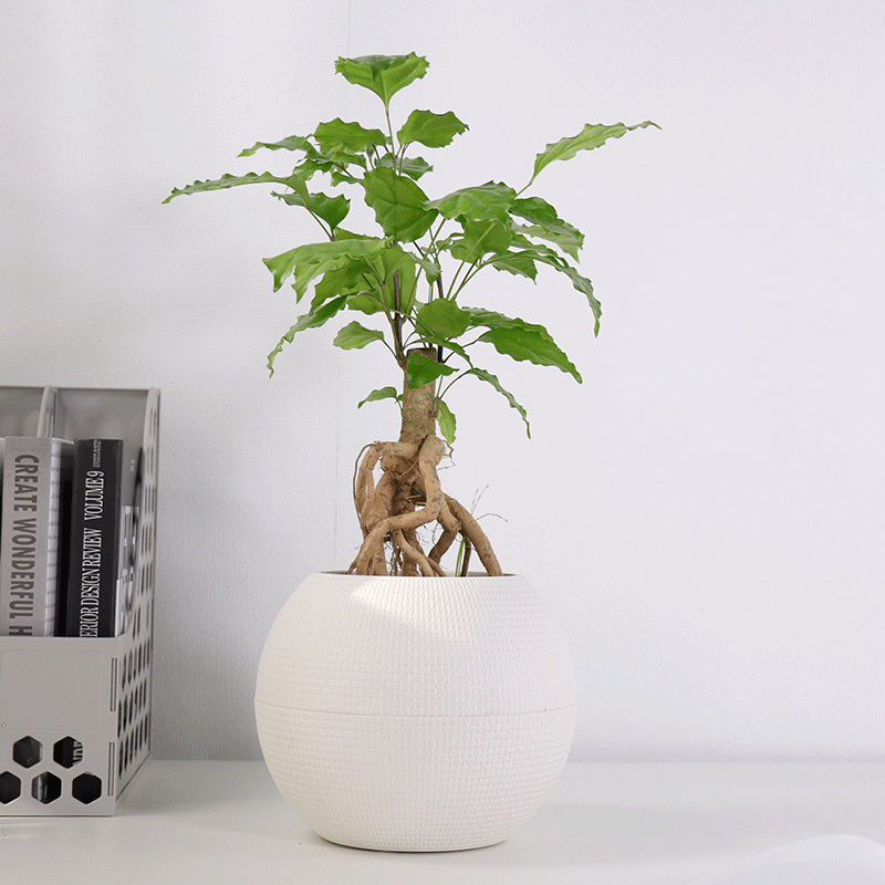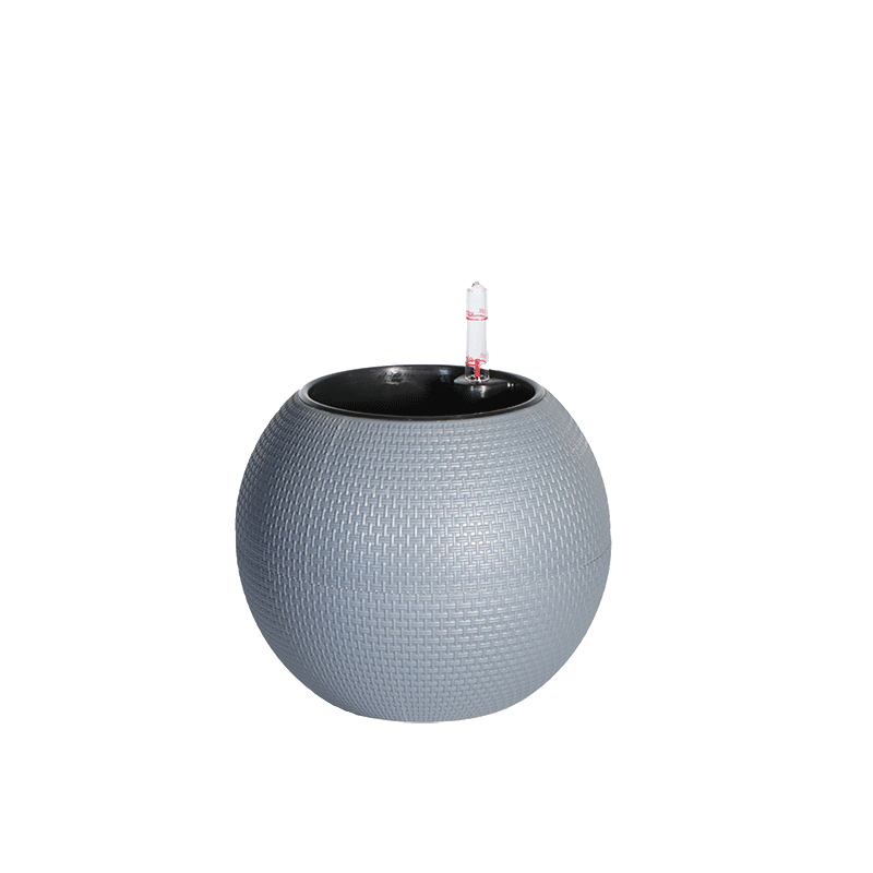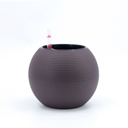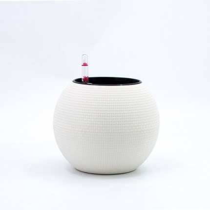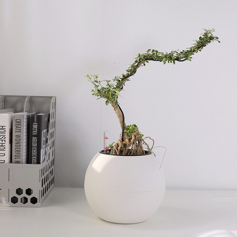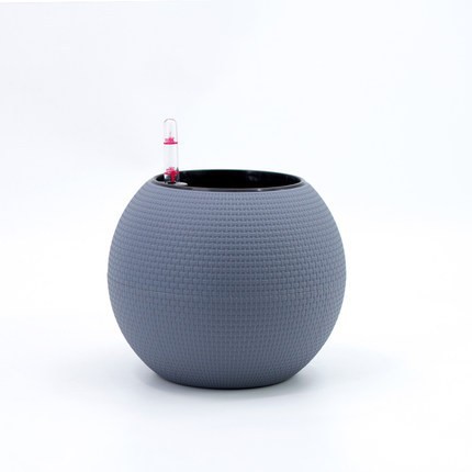 工厂直供自吸水花盆 圆形桌面塑料仿藤编树脂懒人自吸水花盆 批发