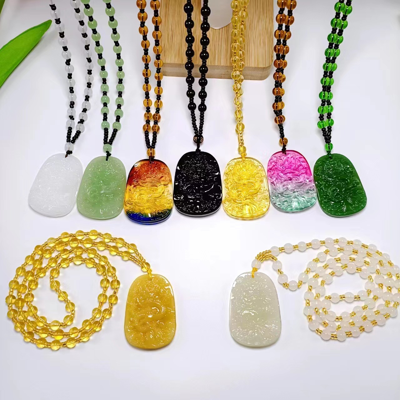 百搭民族风仿碧玉龙凤吊坠貔貅麒麟长款毛衣链地摊热卖厂家批发