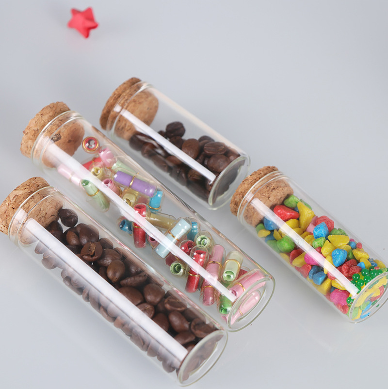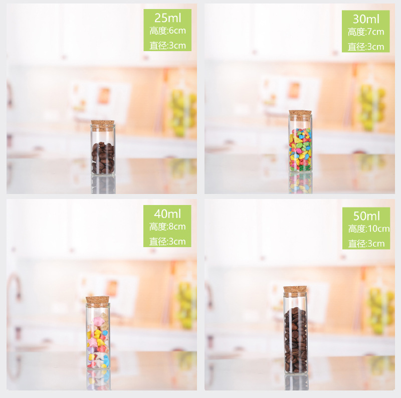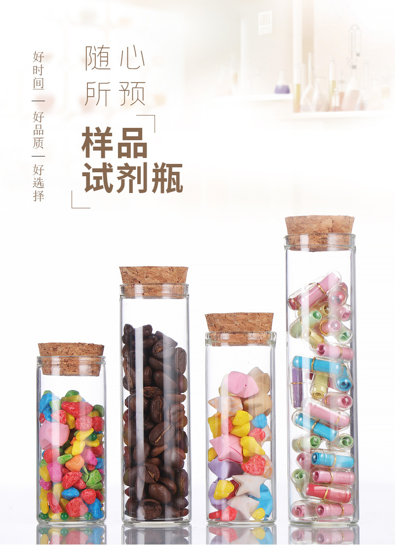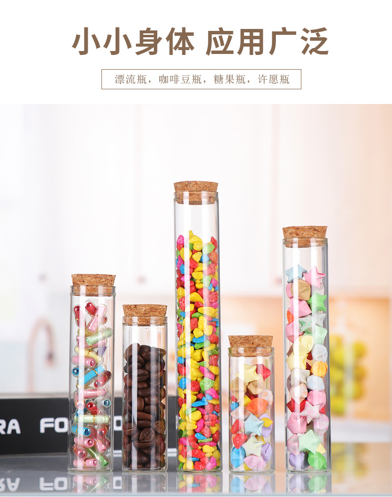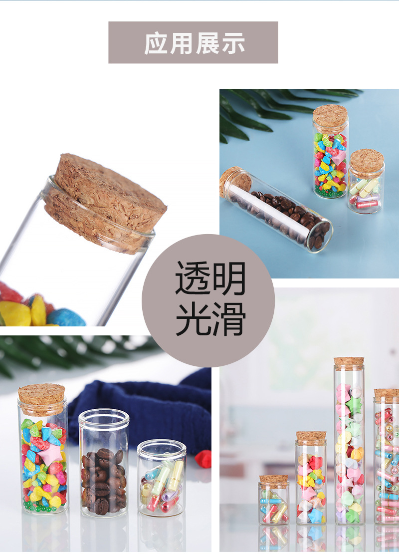 直口30mm管制瓶木塞玻璃瓶玫瑰花分装瓶竹盖糖果瓶平口试管瓶透明