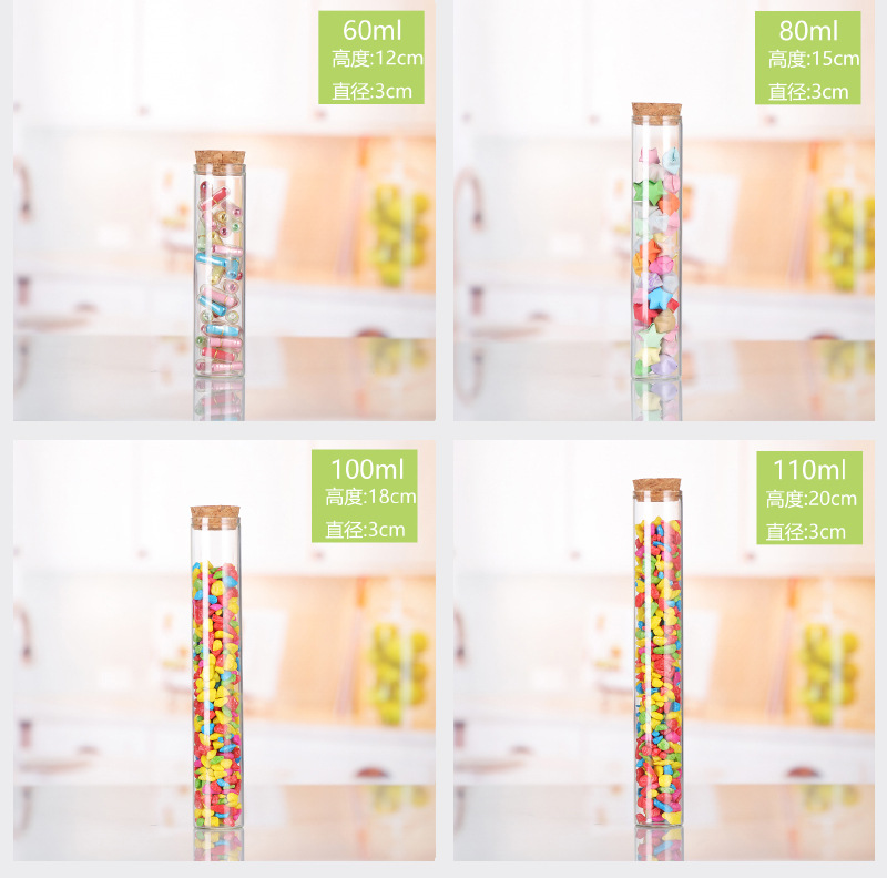 | 30*110 straight mouth containing wooden plug; transparent(30*110直口含木塞;透明) | USD $0.1 | 56613 piece available |