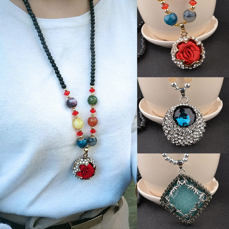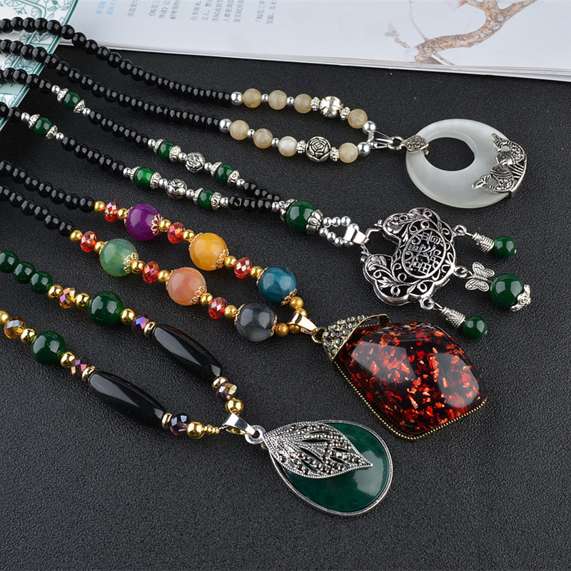 复古树叶水滴毛衣链女长款民族风项链简约衣服配饰时尚挂饰品吊坠