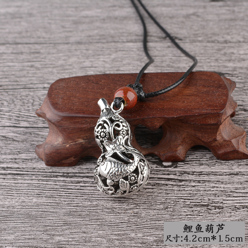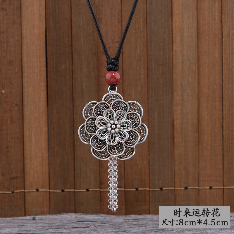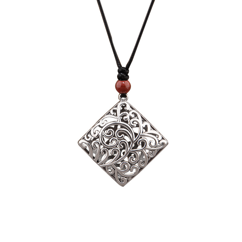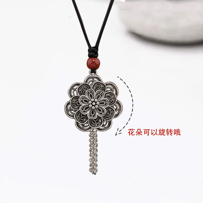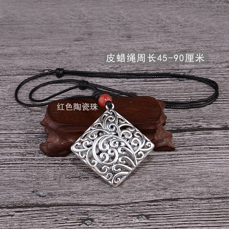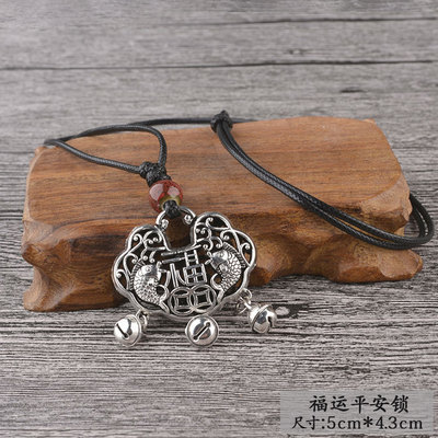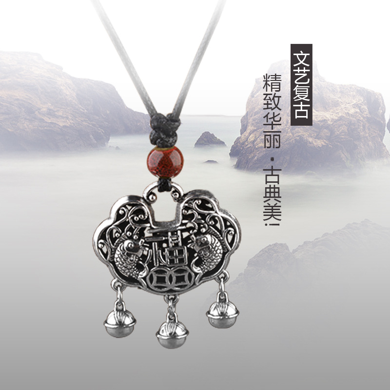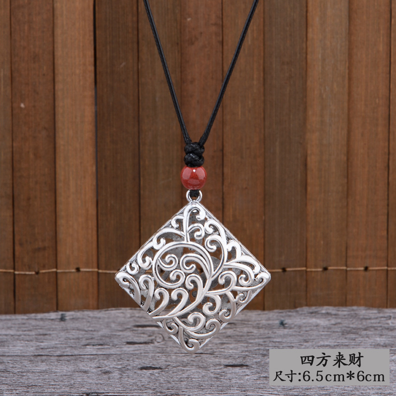 复古藏银项链女百搭长款毛衣链四方来财平安锁民族风文艺配饰挂件