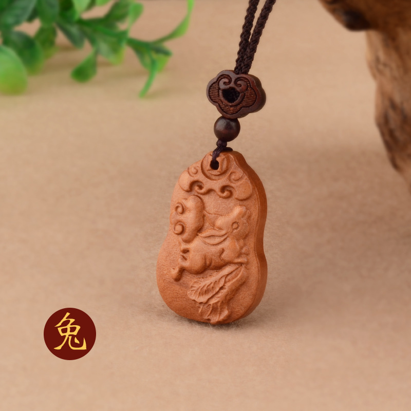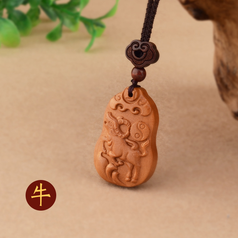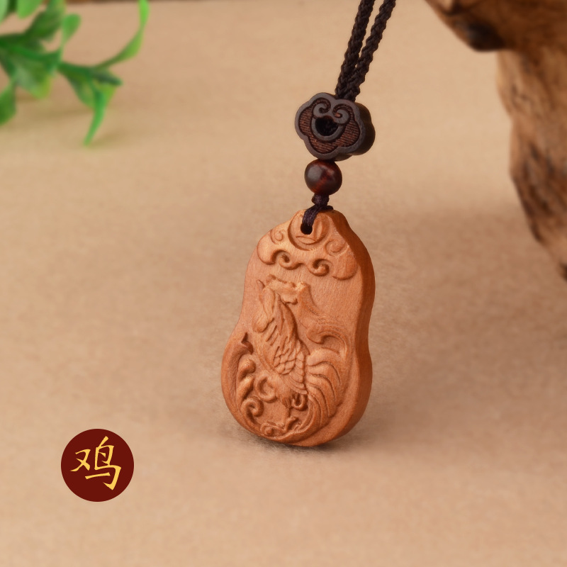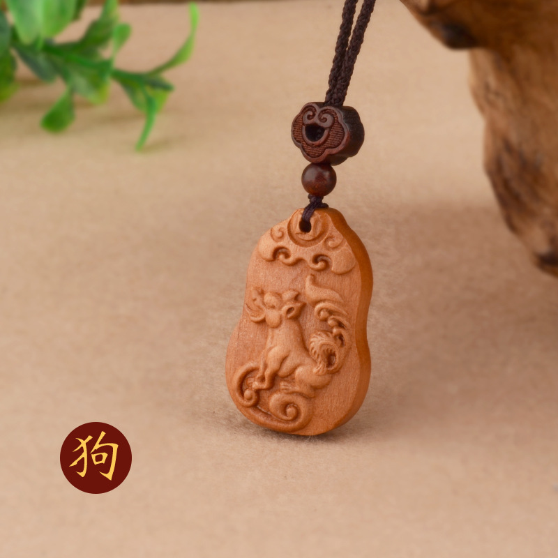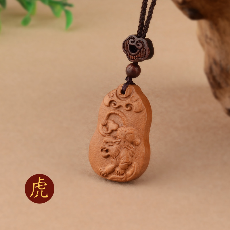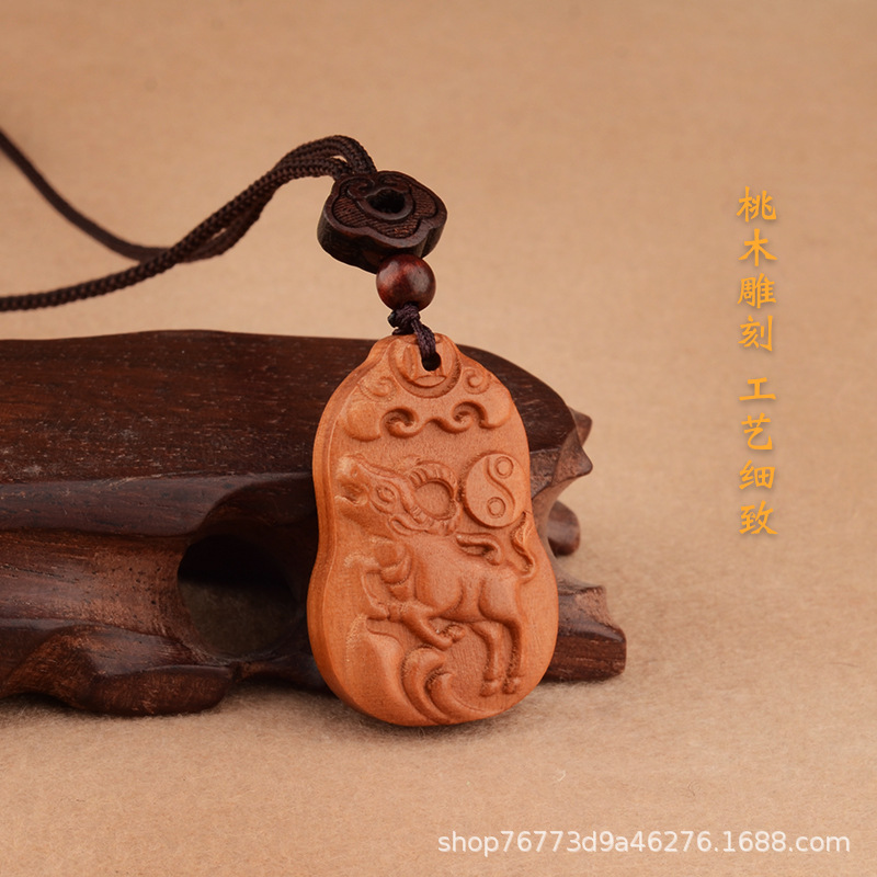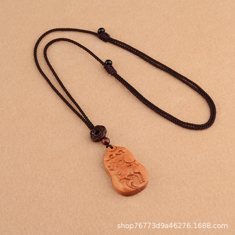 桃木十二生肖项链本命年男女百搭儿童民族风本命年项链属相饰品