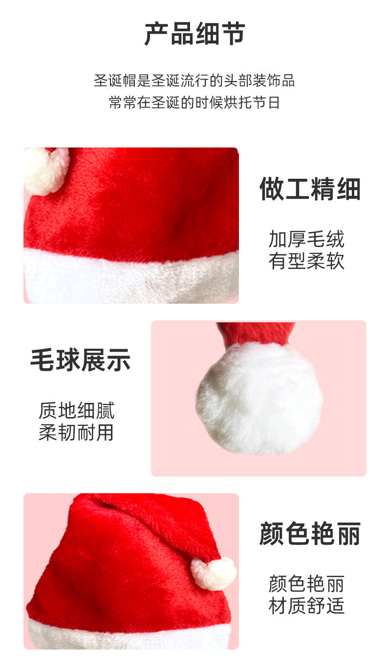 圣诞帽圣诞节装饰品短毛绒帽无纺布成人帽支持来图来样加LOGO