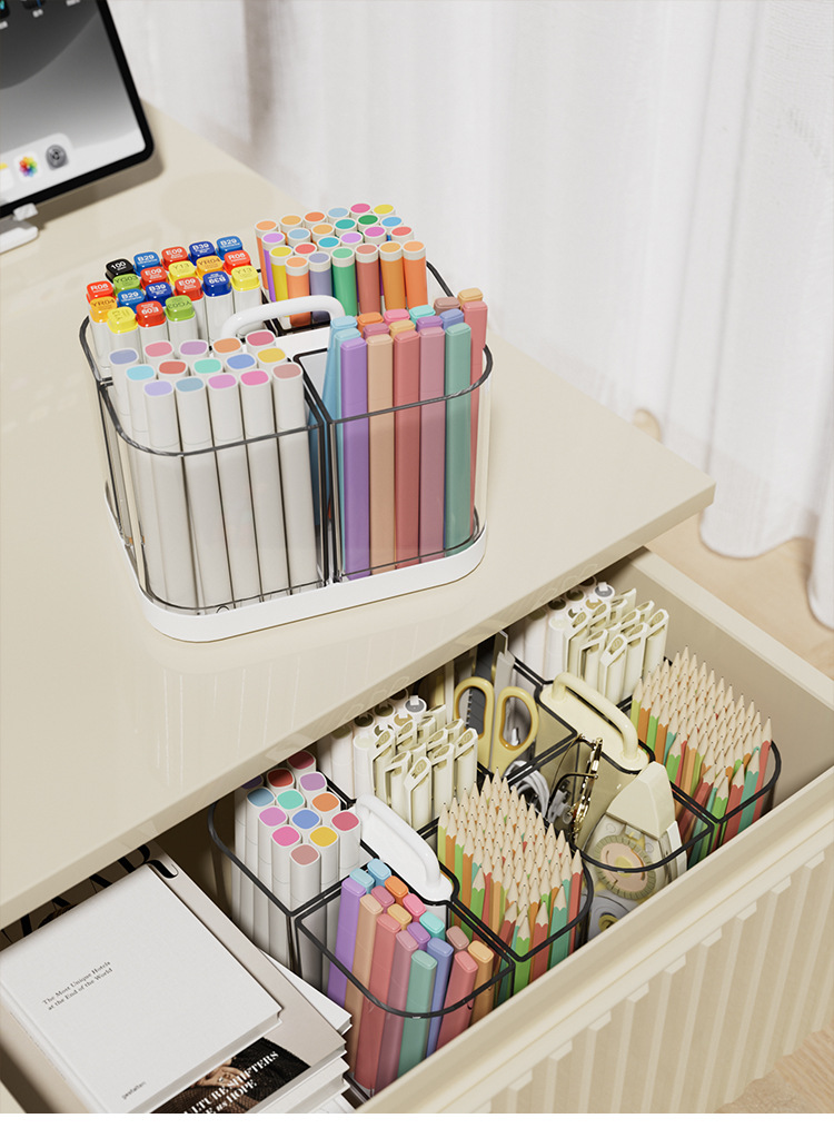 手提桌面收纳盒学生桌面收纳桶办公室大容量分格可拆卸整理盒现货