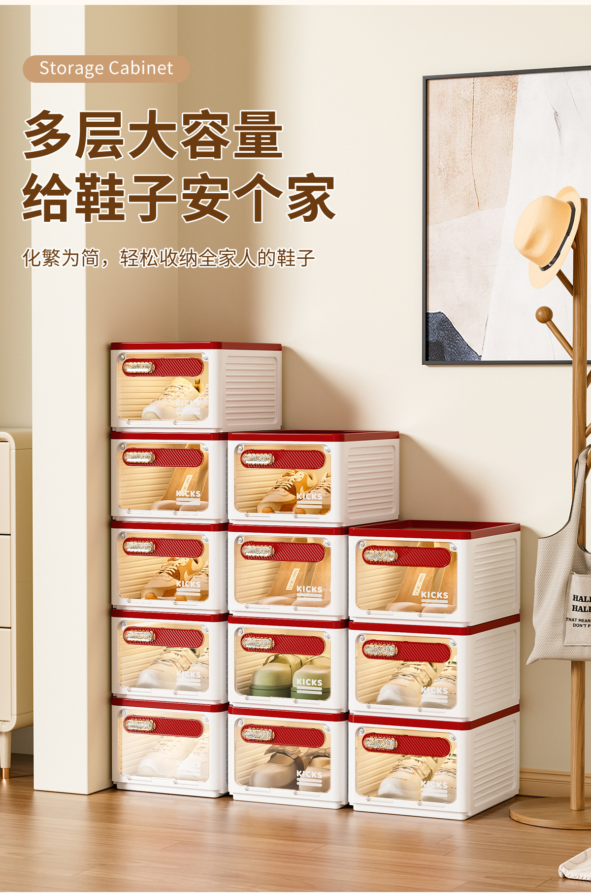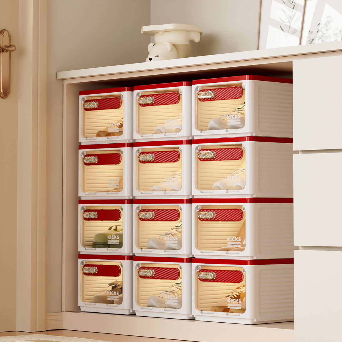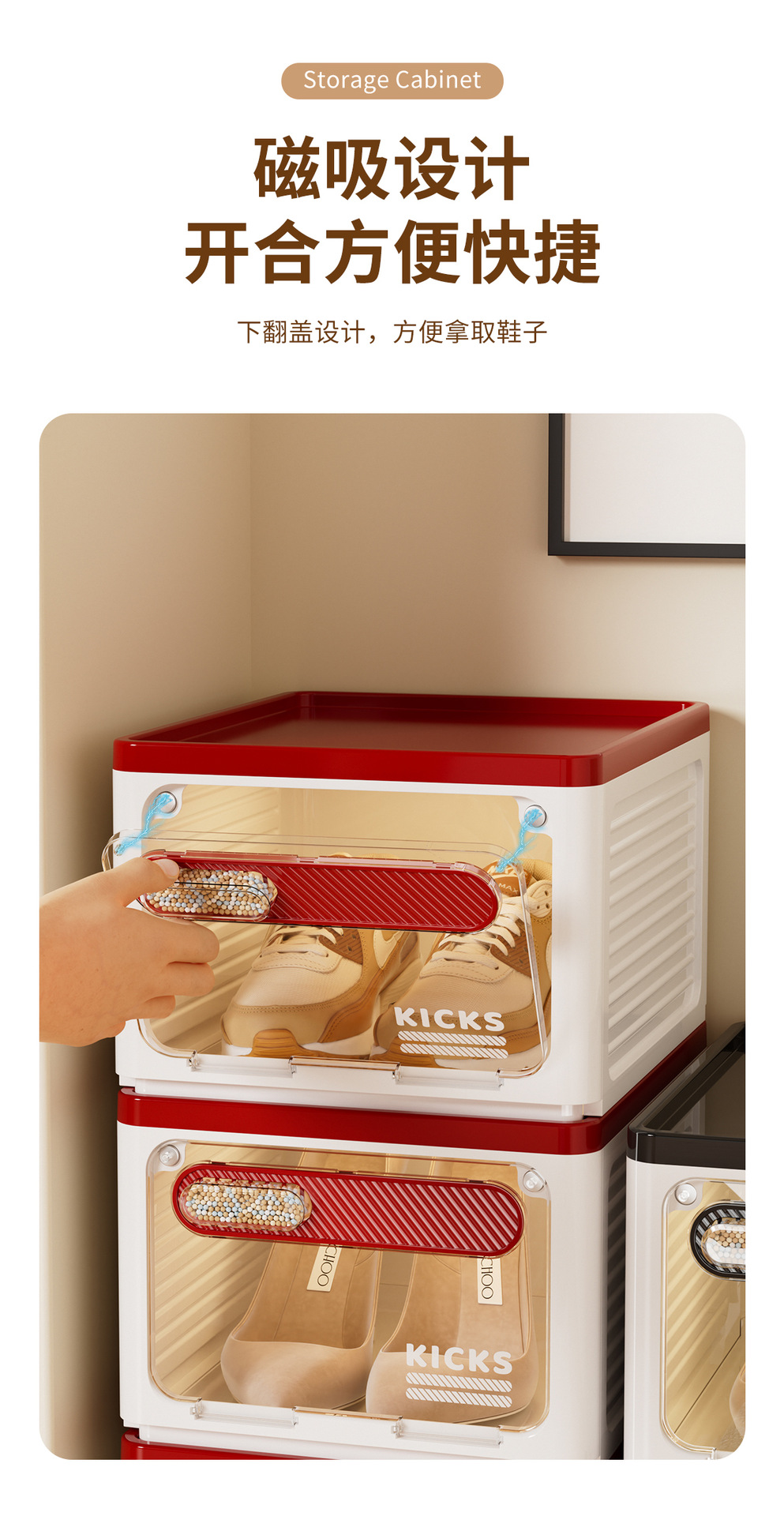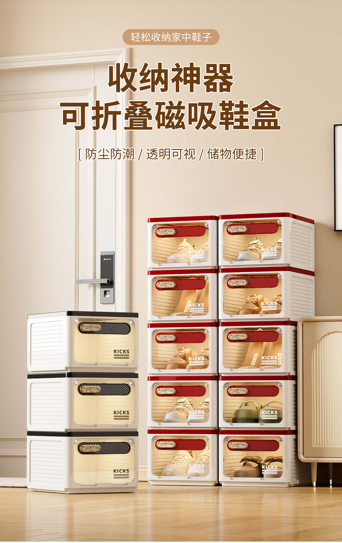 折叠收纳鞋盒带磁吸鞋子收纳盒高颜值大容量鞋盒防尘加厚收纳鞋架