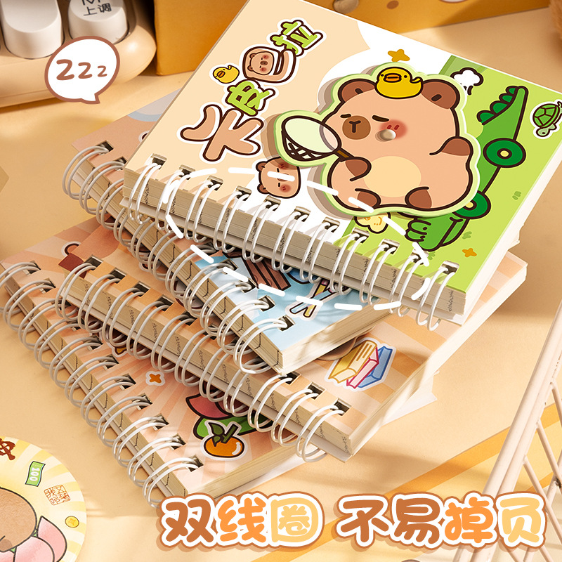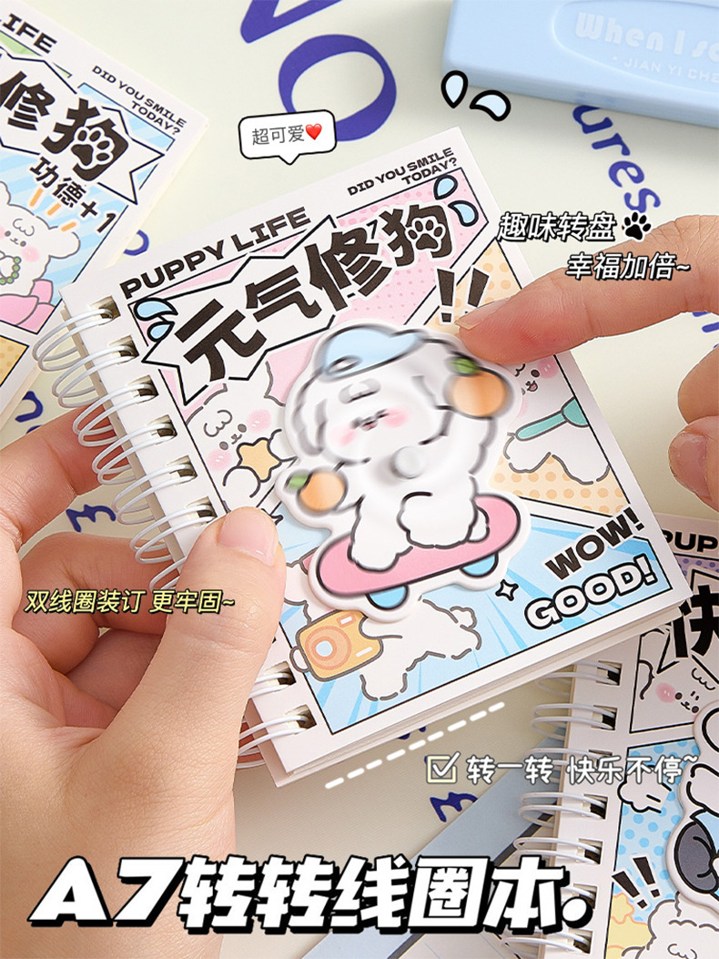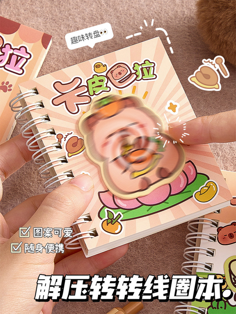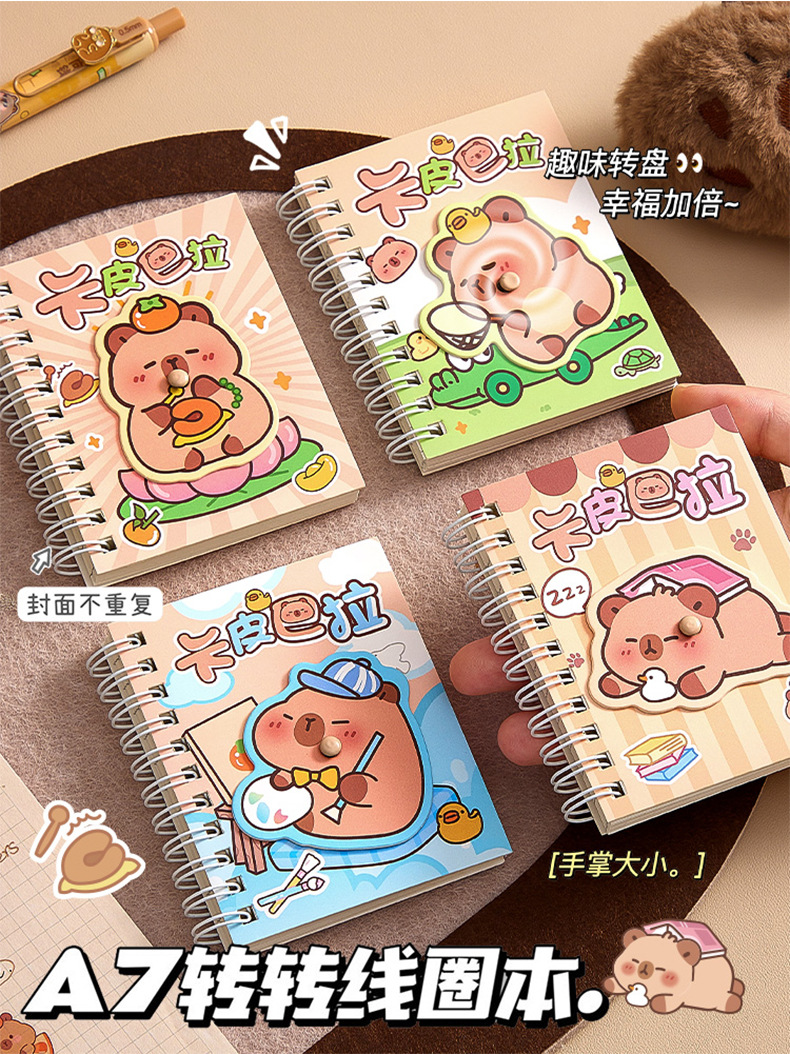 新款A7双线圈小本子转转本高颜值趣味转盘卡皮巴拉解压线圈笔记本