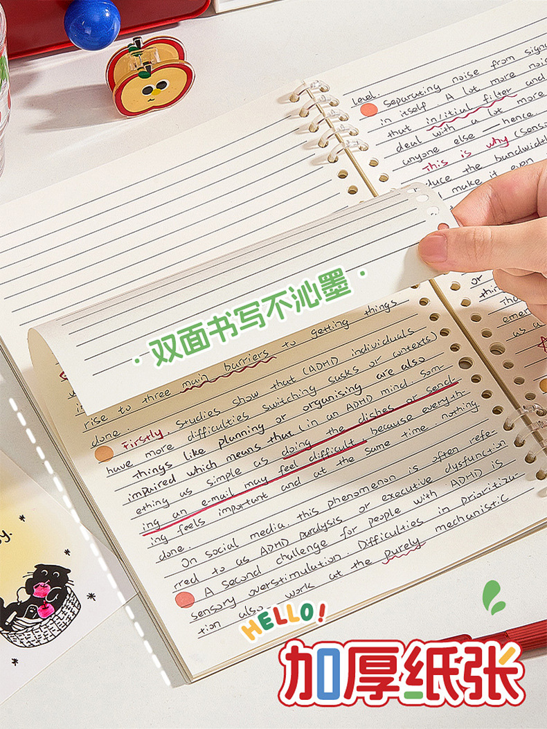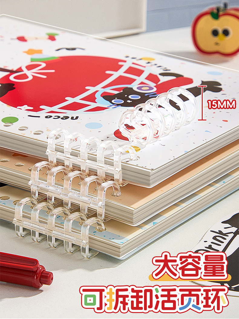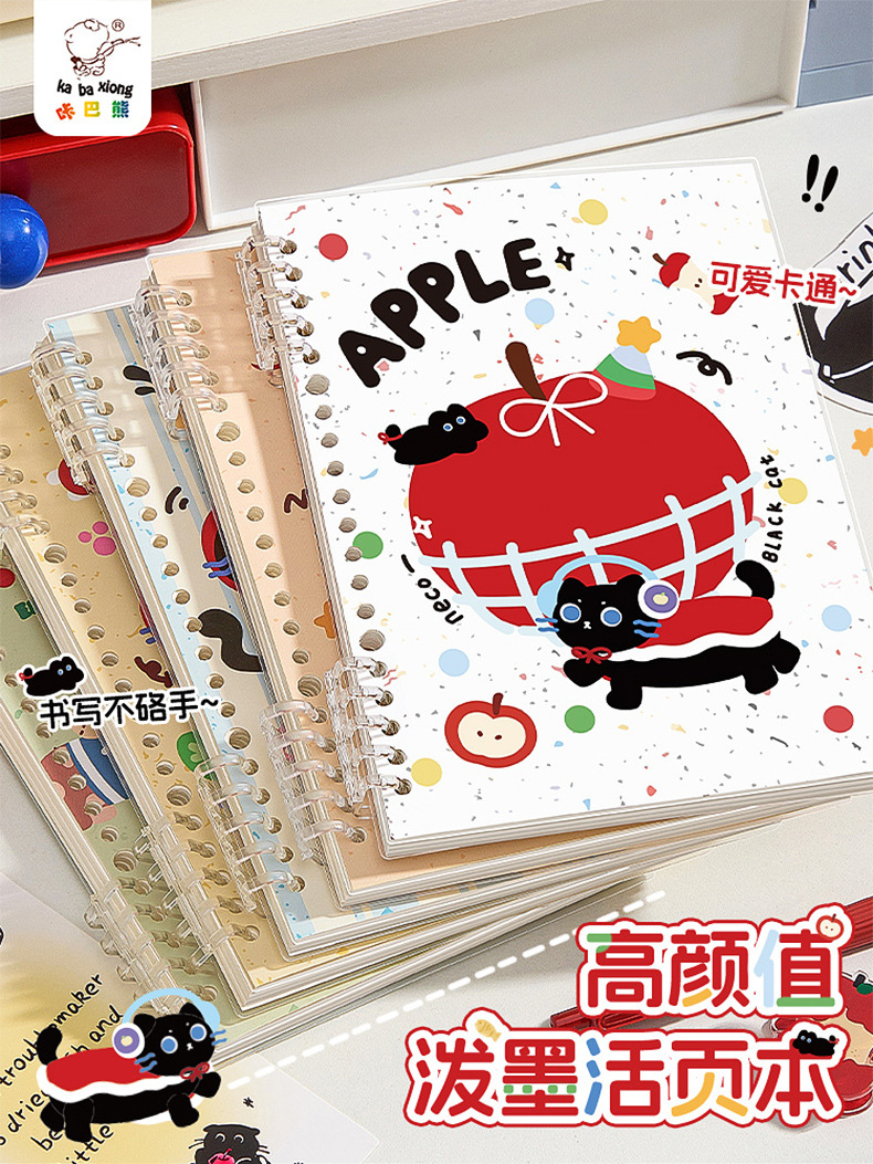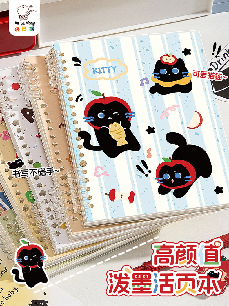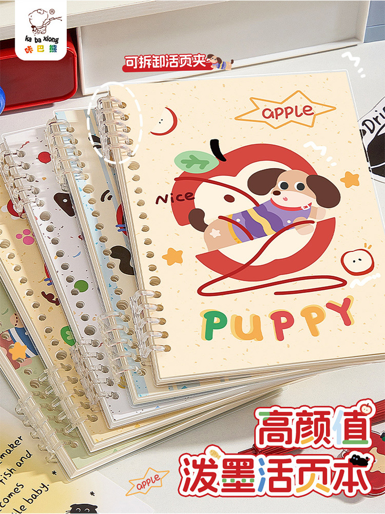 咔巴熊高颜值泼墨加厚活页本学生横线可拆卸可爱笔记本卡通线圈本