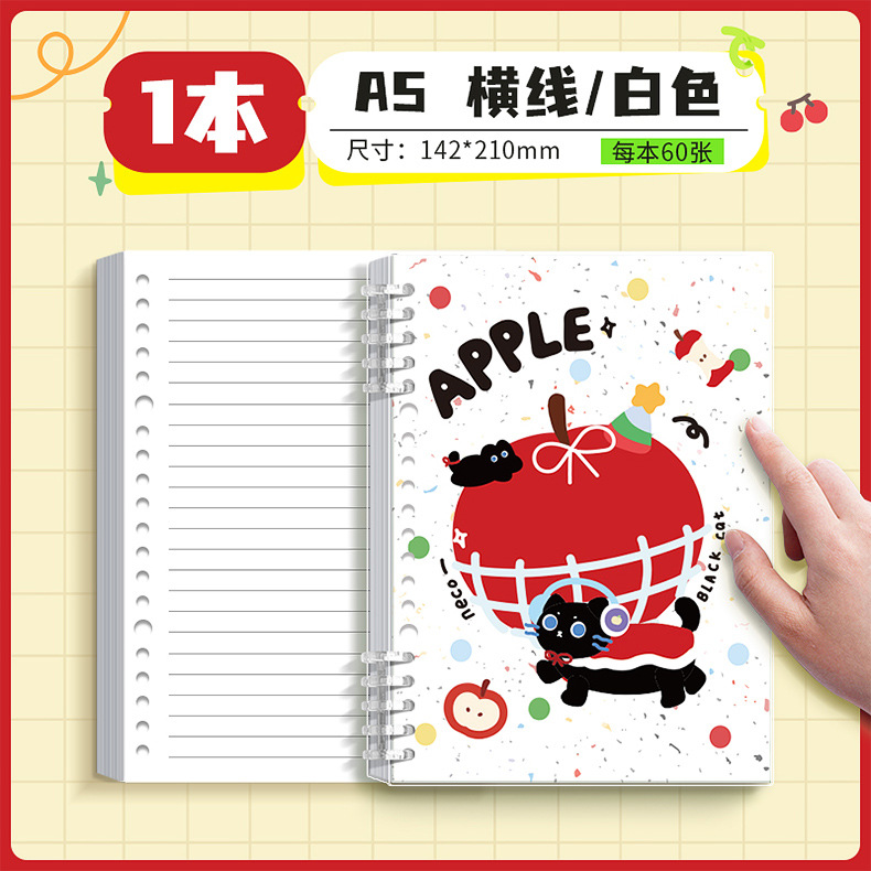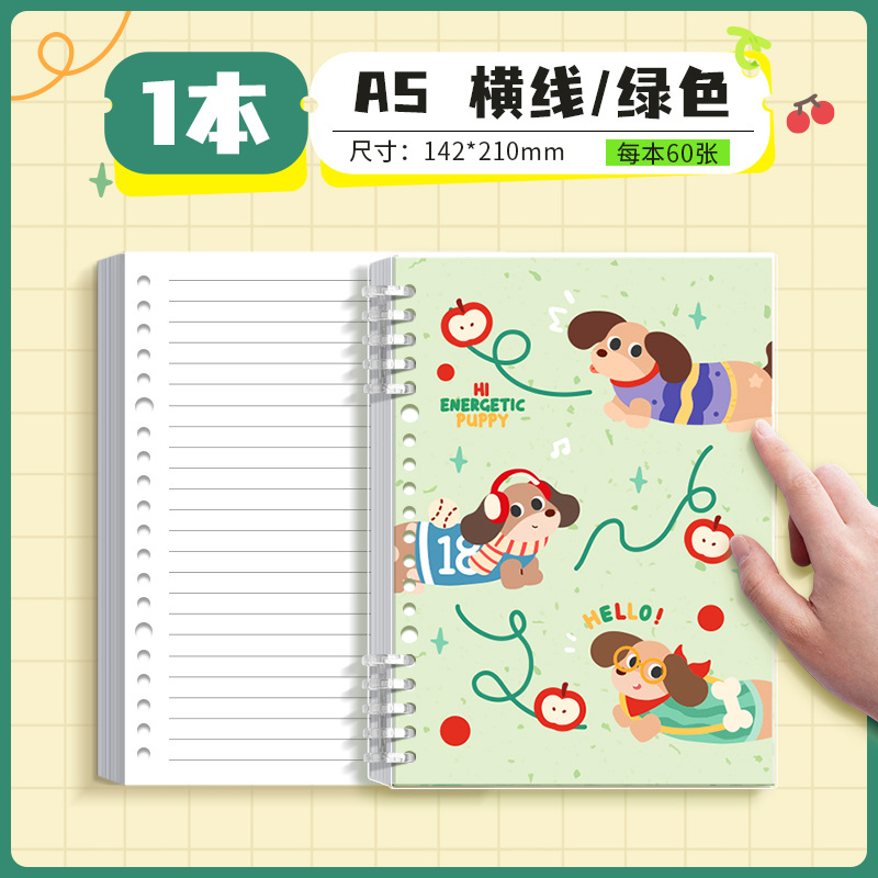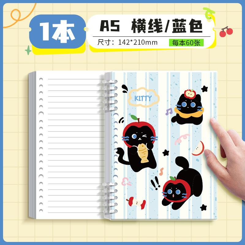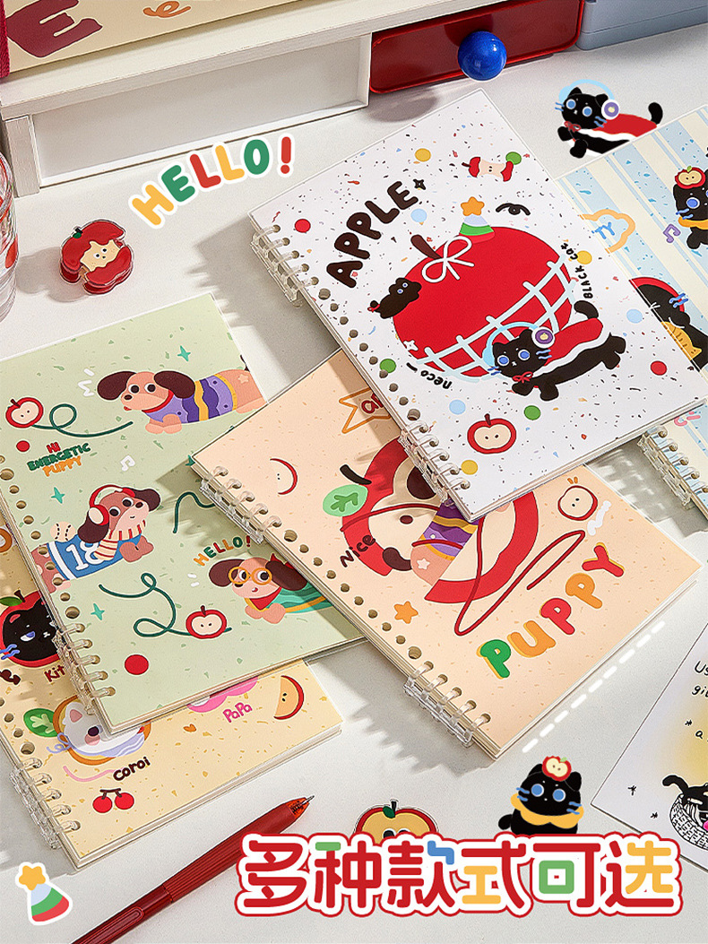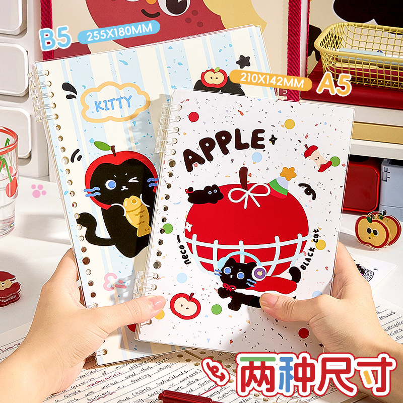 咔巴熊高颜值泼墨加厚活页本学生横线可拆卸可爱笔记本卡通线圈本
