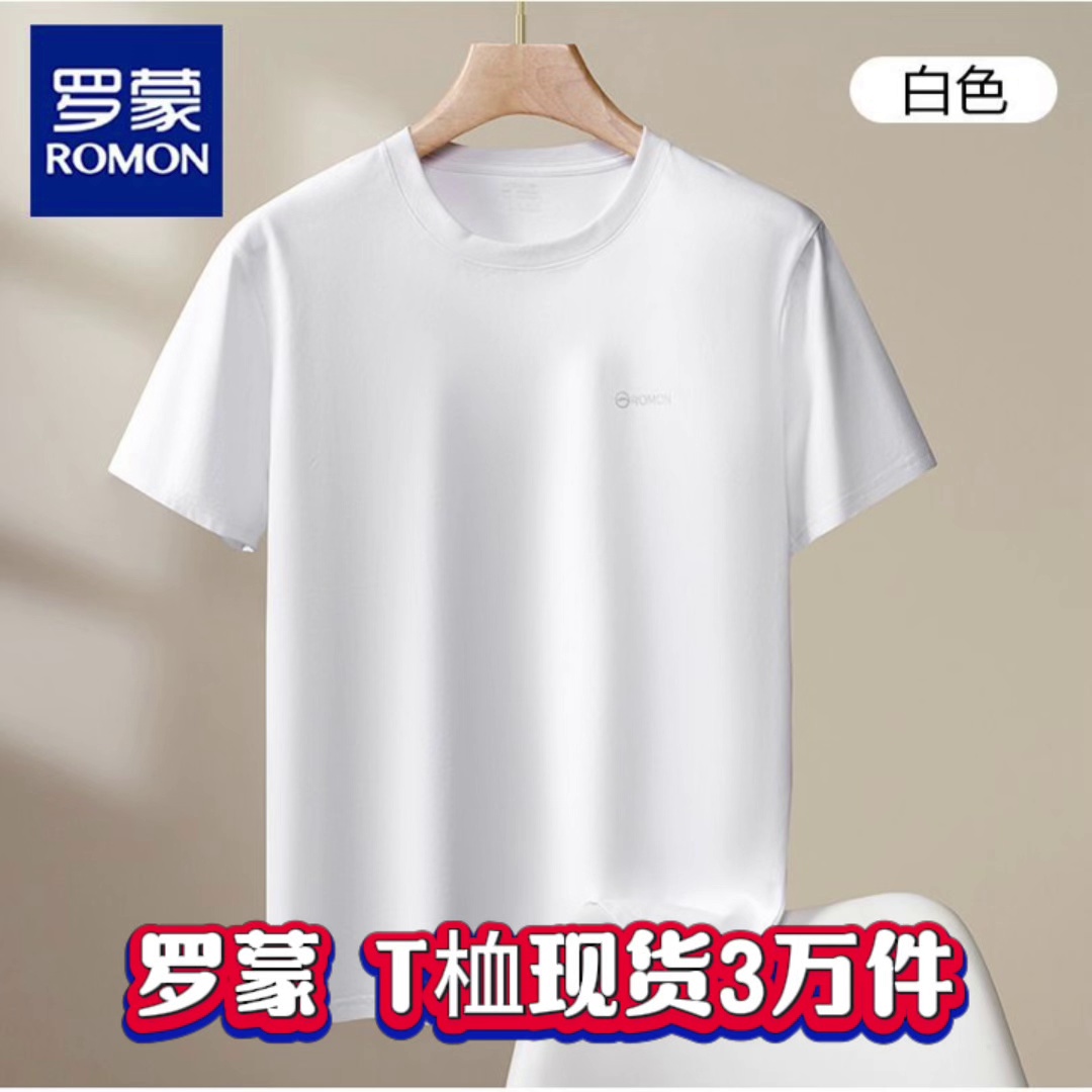 罗蒙短袖T恤男款2025夏季新款丝光棉黑色半袖上衣服男生纯色T体恤