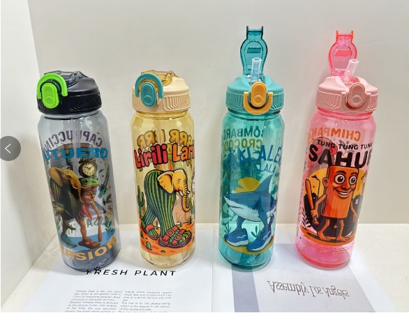 海外热销爆款山海经系列水杯儿童水杯吸管直饮学生手提太空杯批发