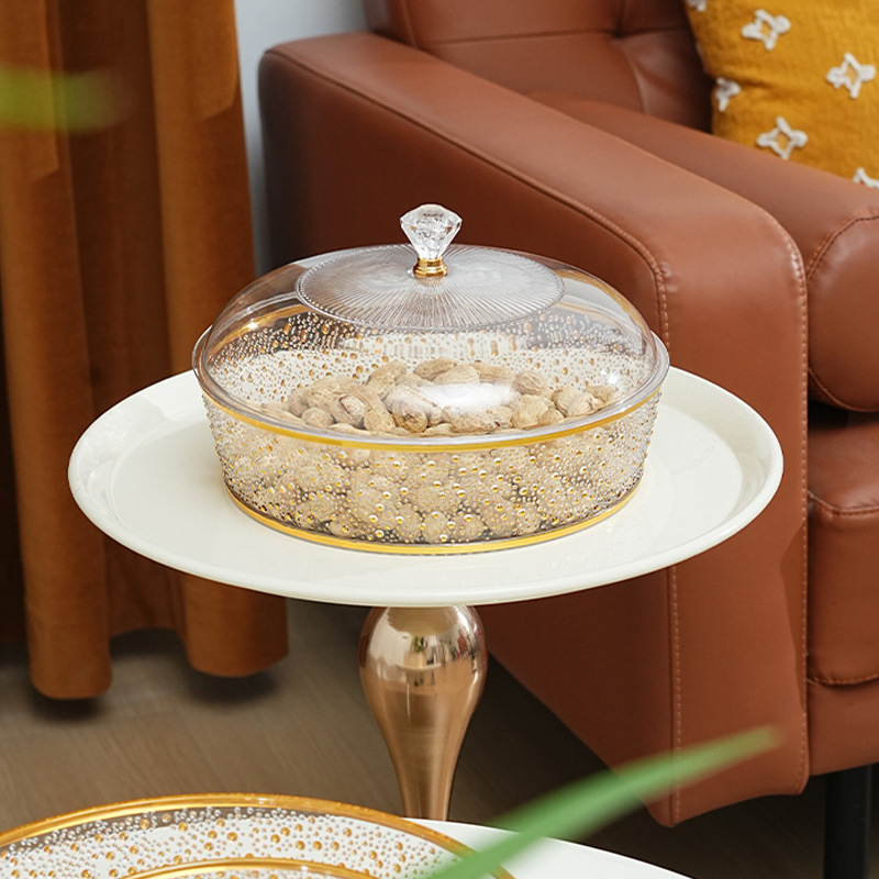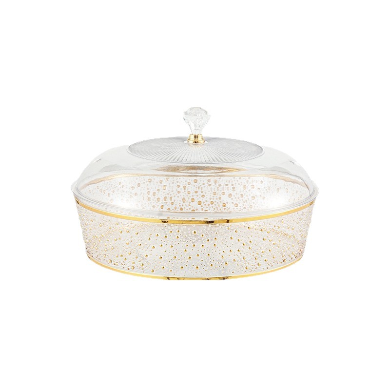 金边透明带盖收纳盒珍珠纹理圆形水果盘桌面食物零食整理储物果盘