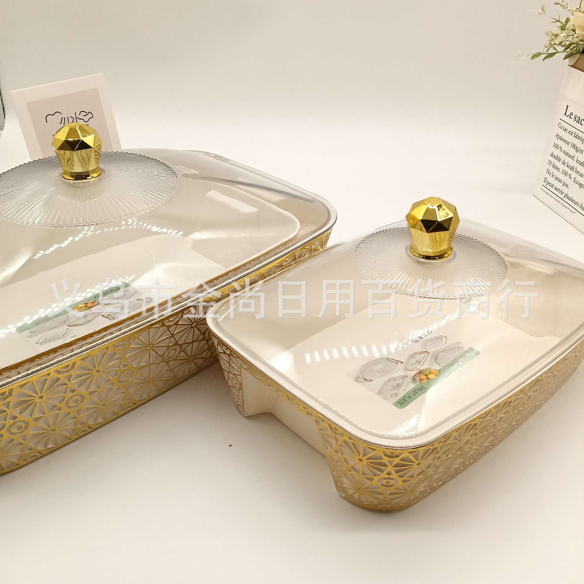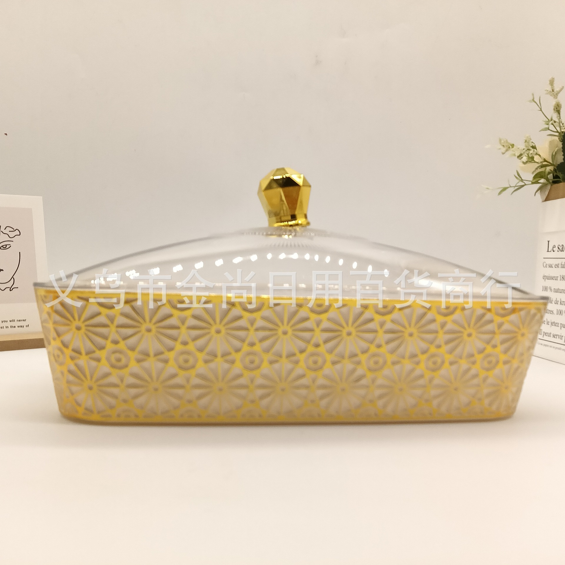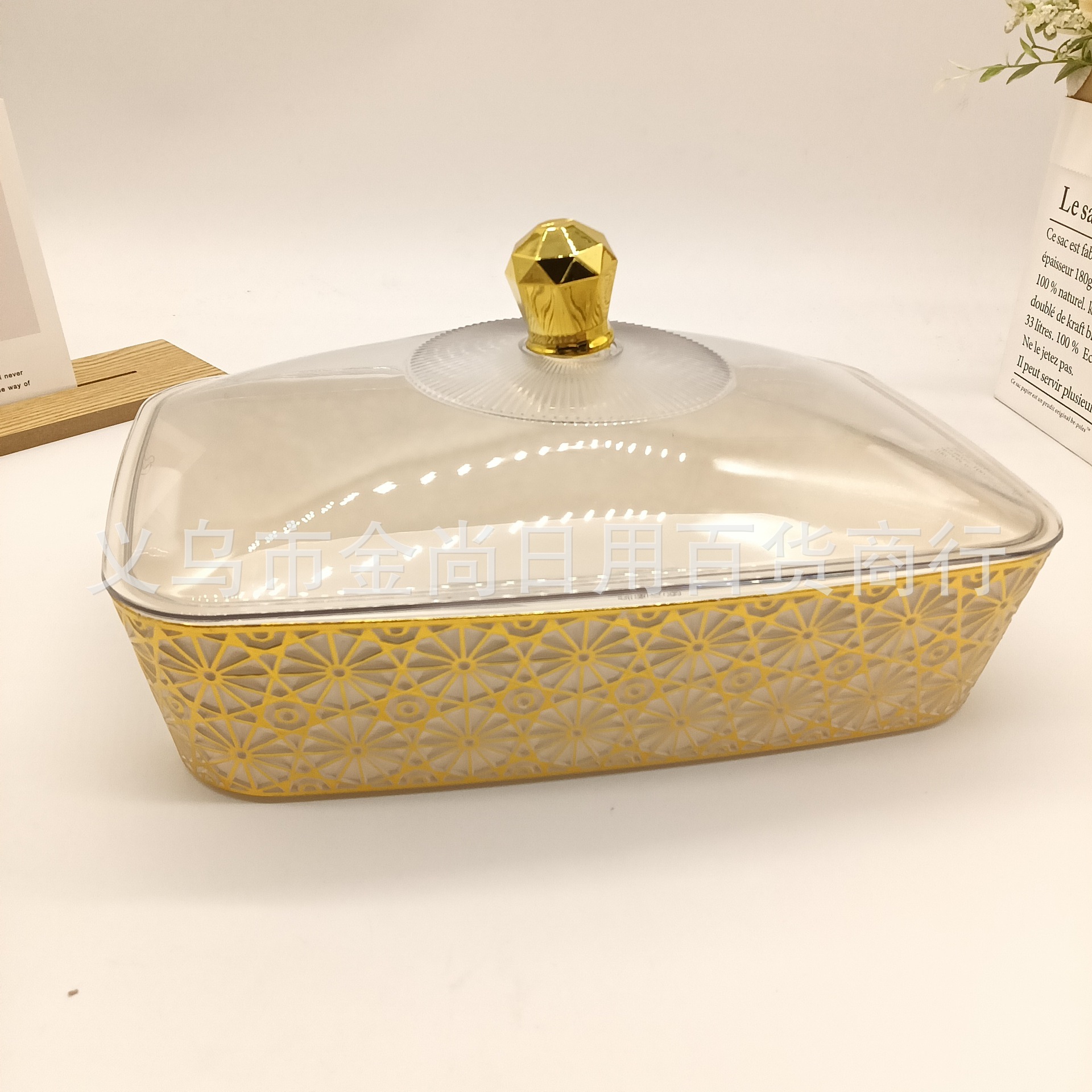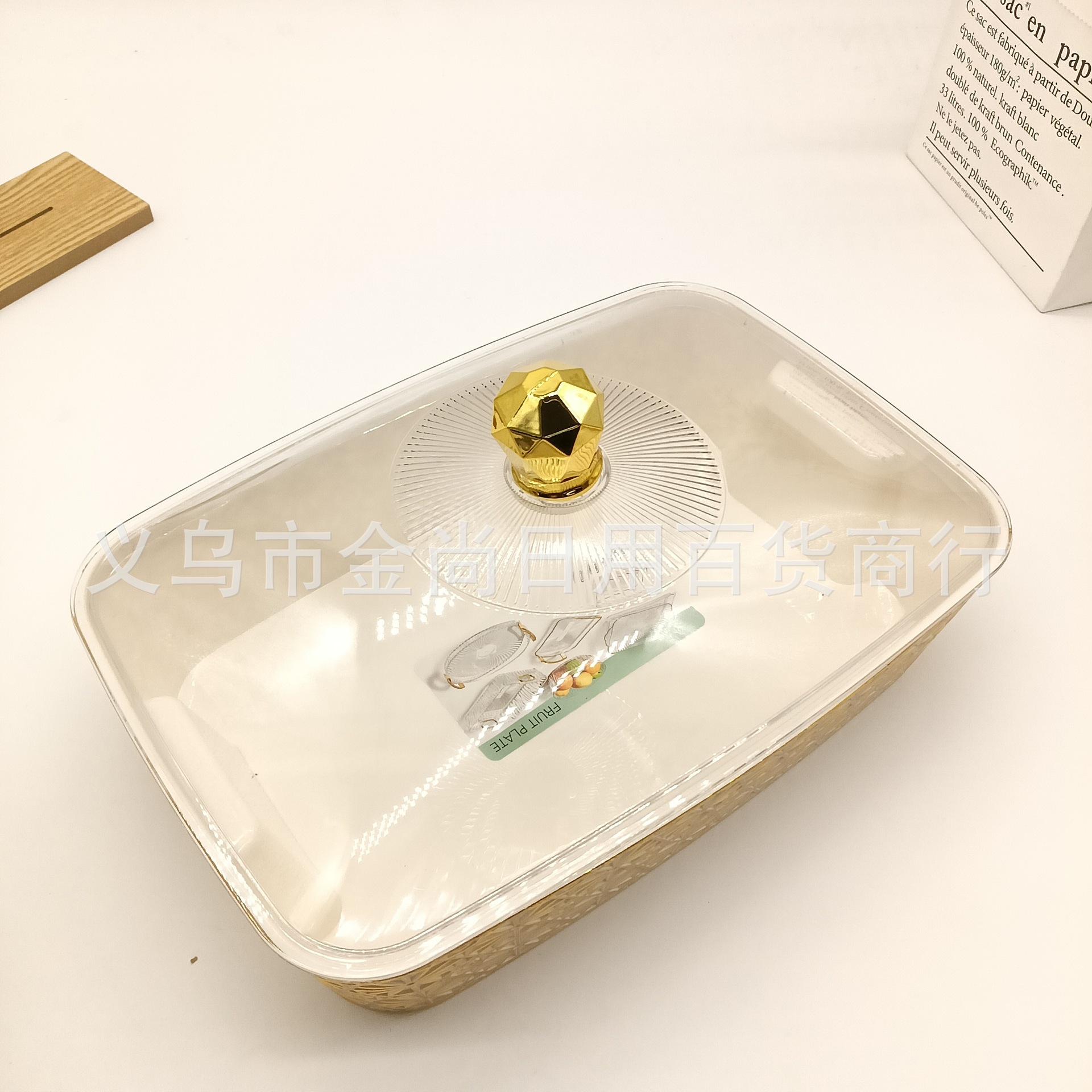 长方形形透明水果盘金色带盖新款雕花果碟塑料干果盘跨境批发
