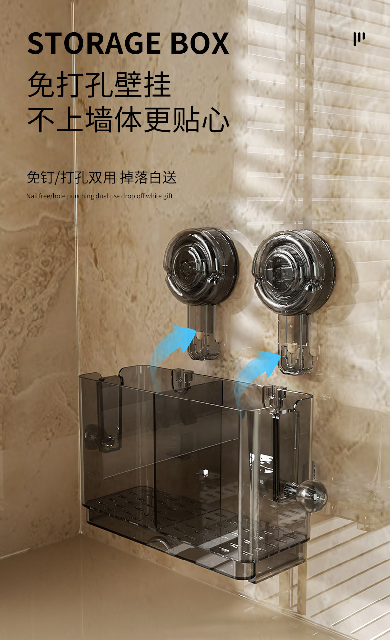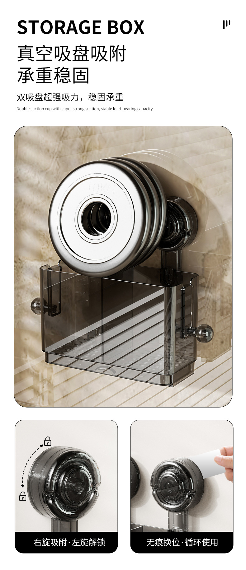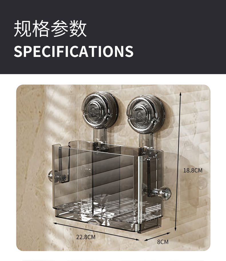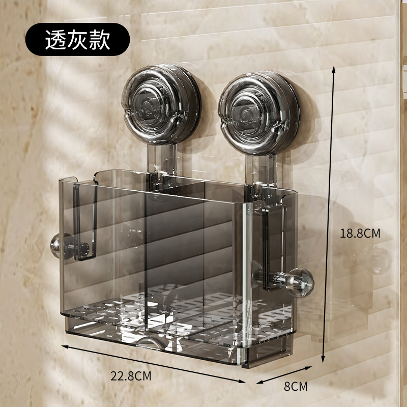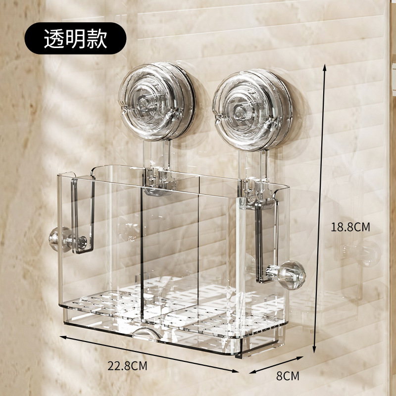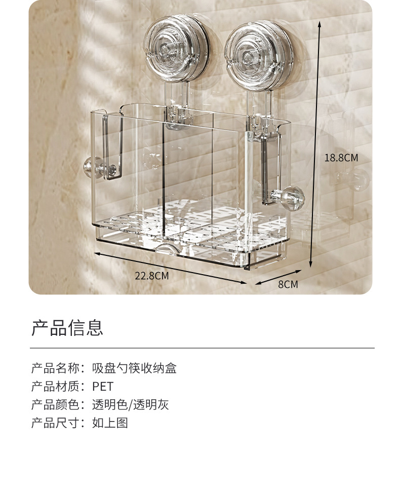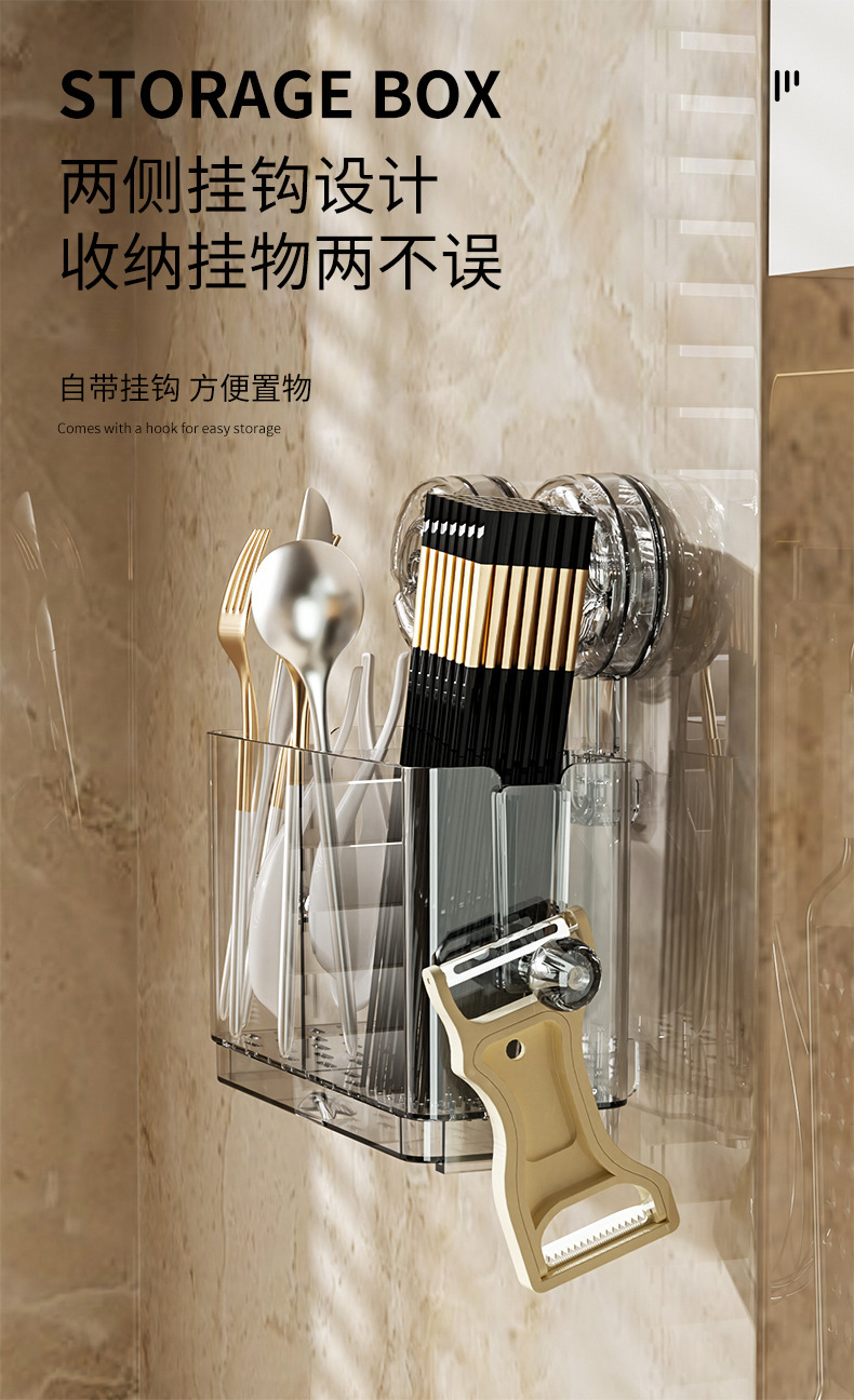 家用厨房收纳盒免打孔沥水轻奢透明置物架吸盘筷子餐具置物收纳盒