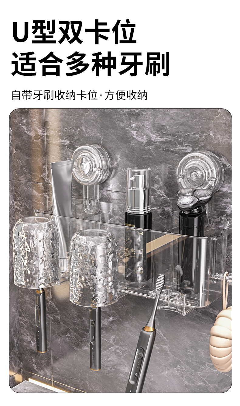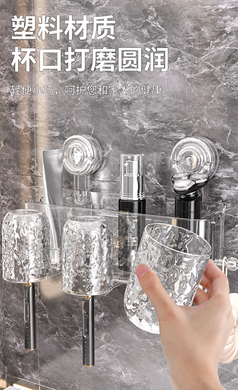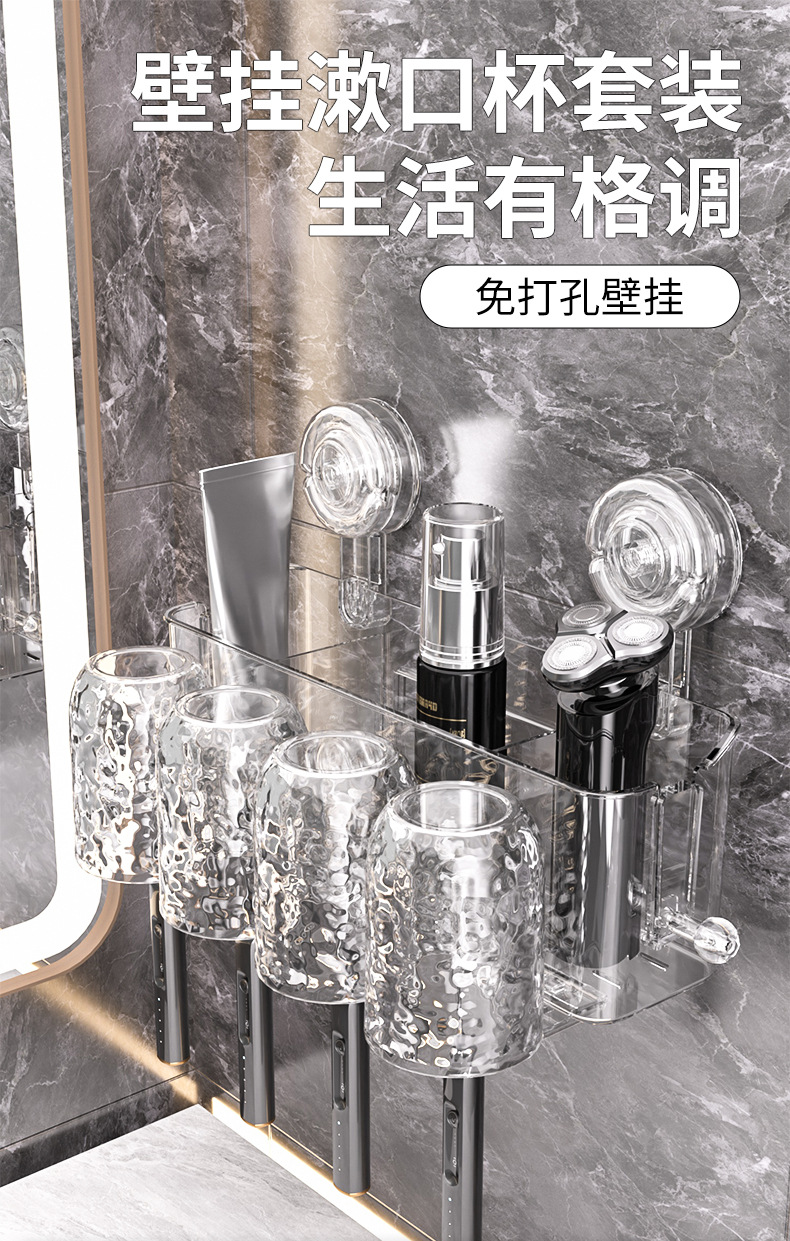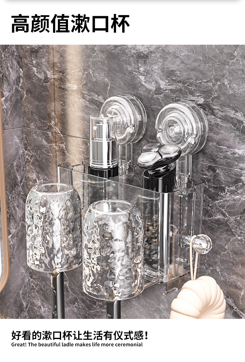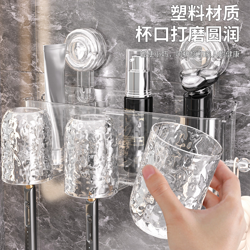 卫生间带把手刷牙杯漱口杯架子壁挂式识别杯吸盘牙刷置物架免打孔