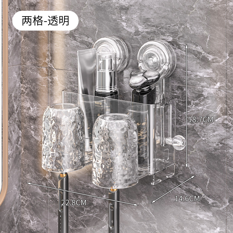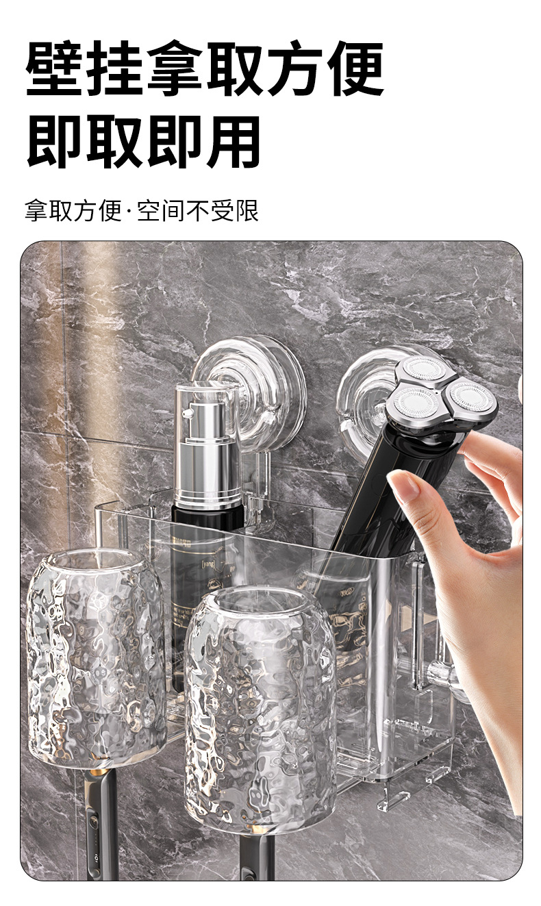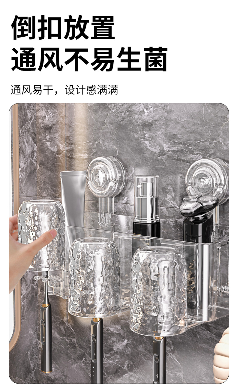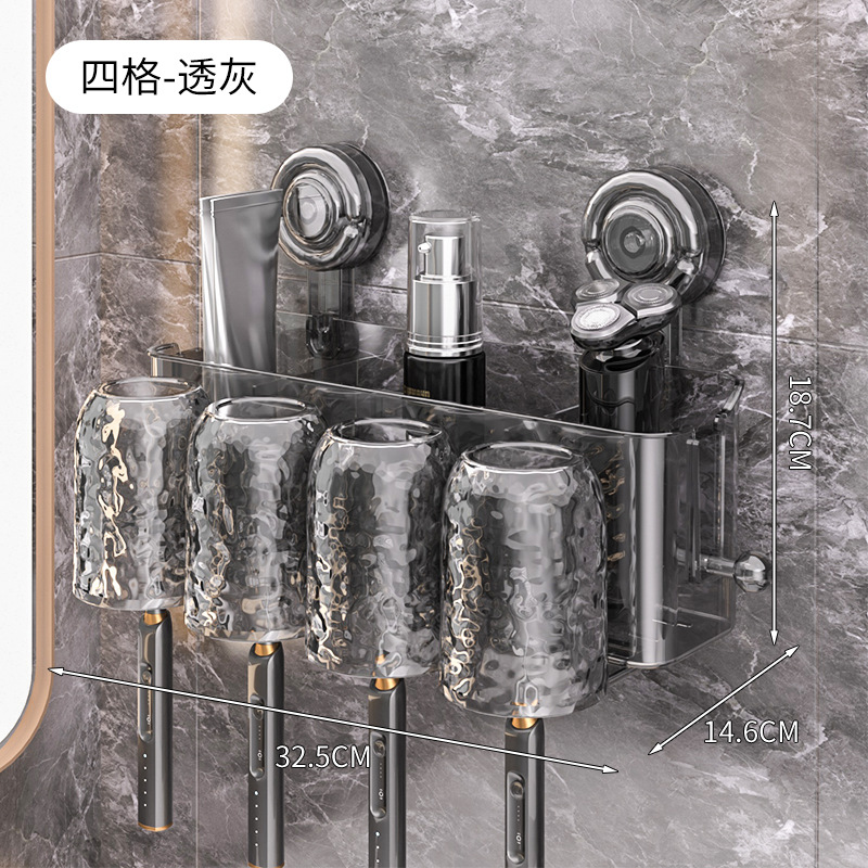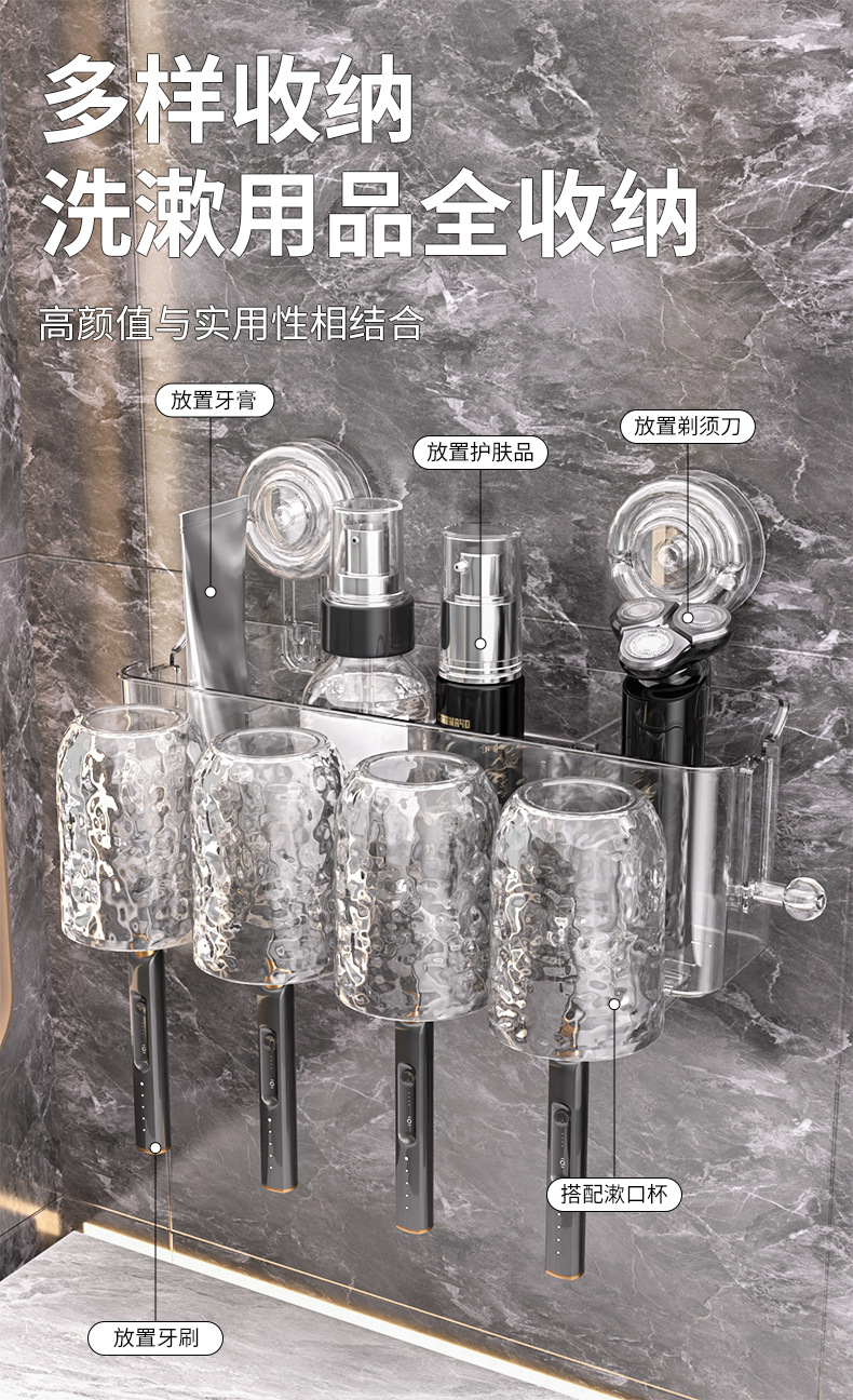 卫生间带把手刷牙杯漱口杯架子壁挂式识别杯吸盘牙刷置物架免打孔