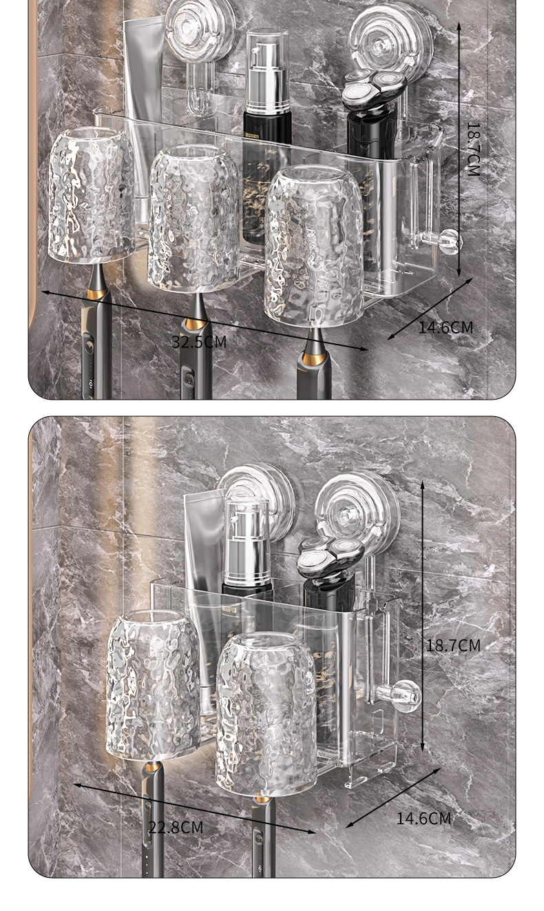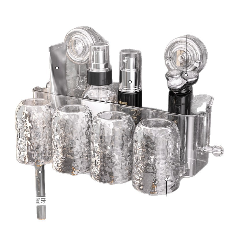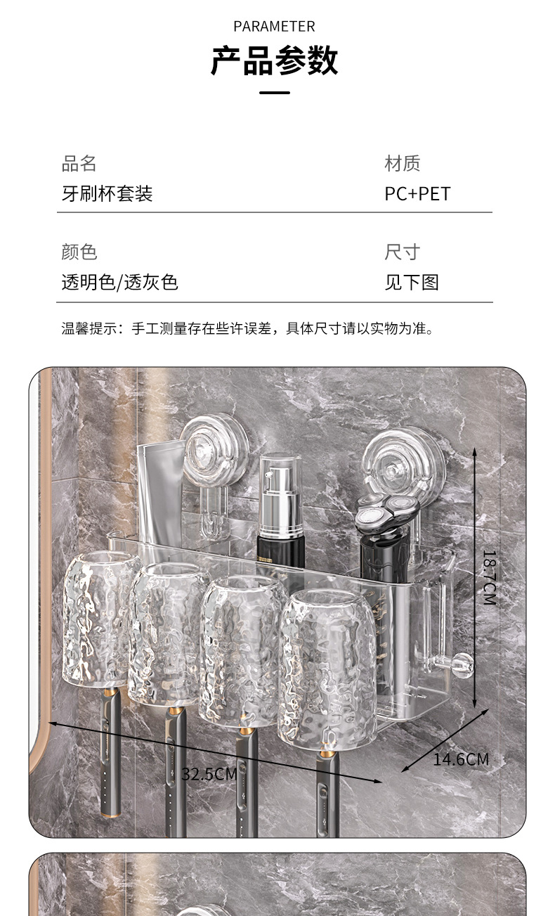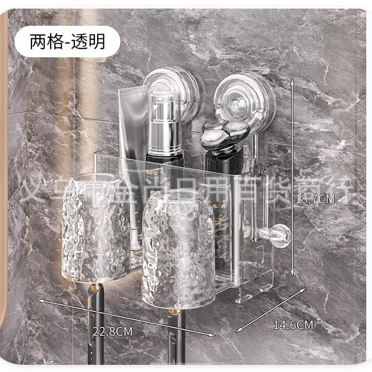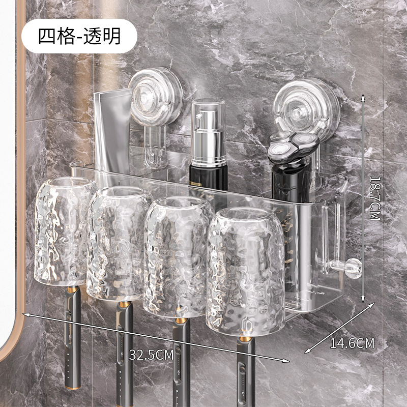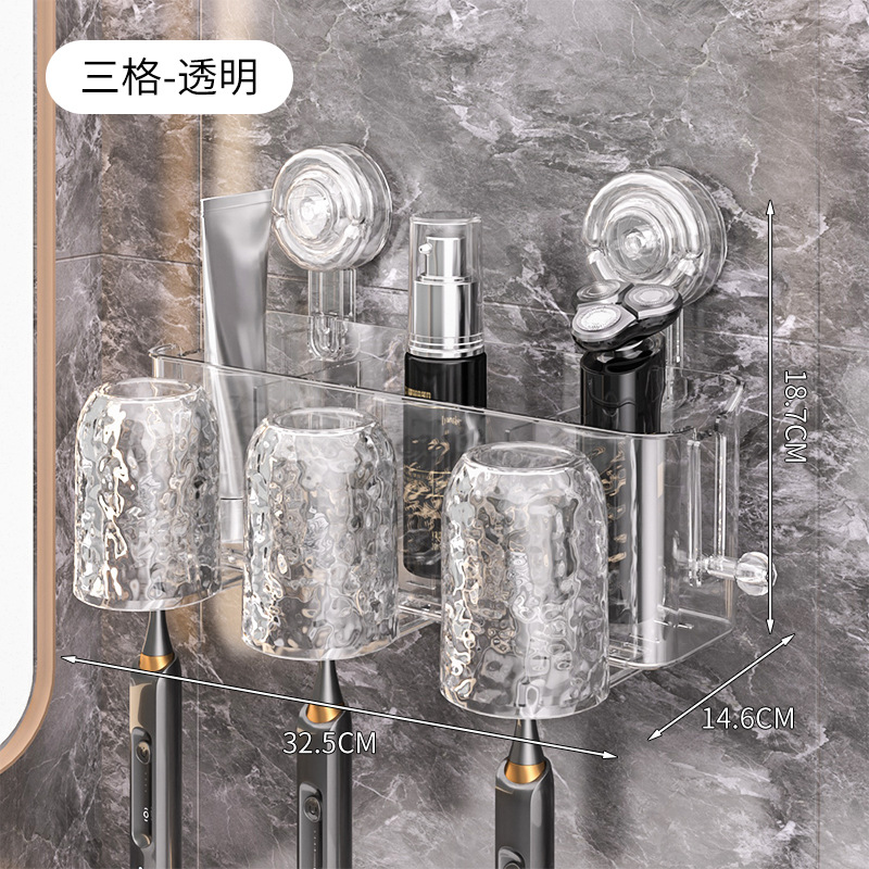 卫生间带把手刷牙杯漱口杯架子壁挂式识别杯吸盘牙刷置物架免打孔