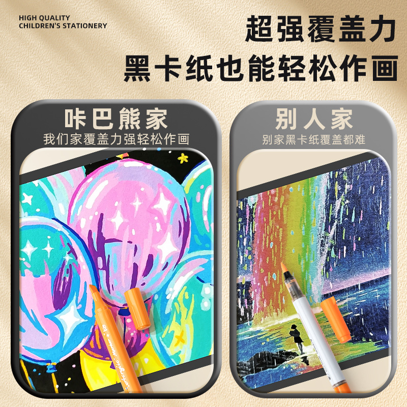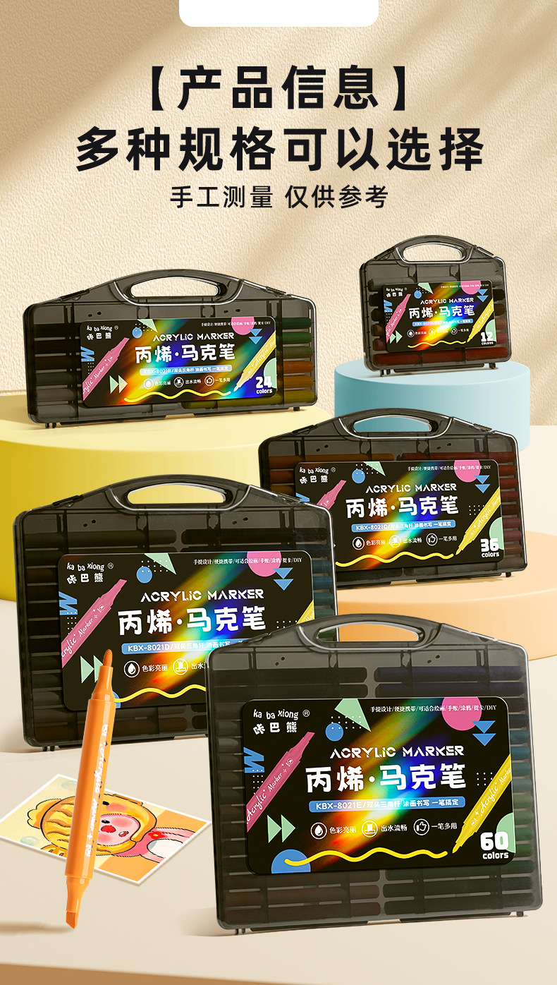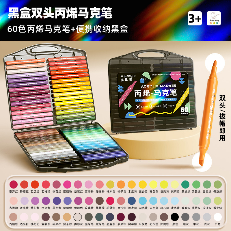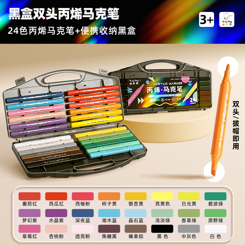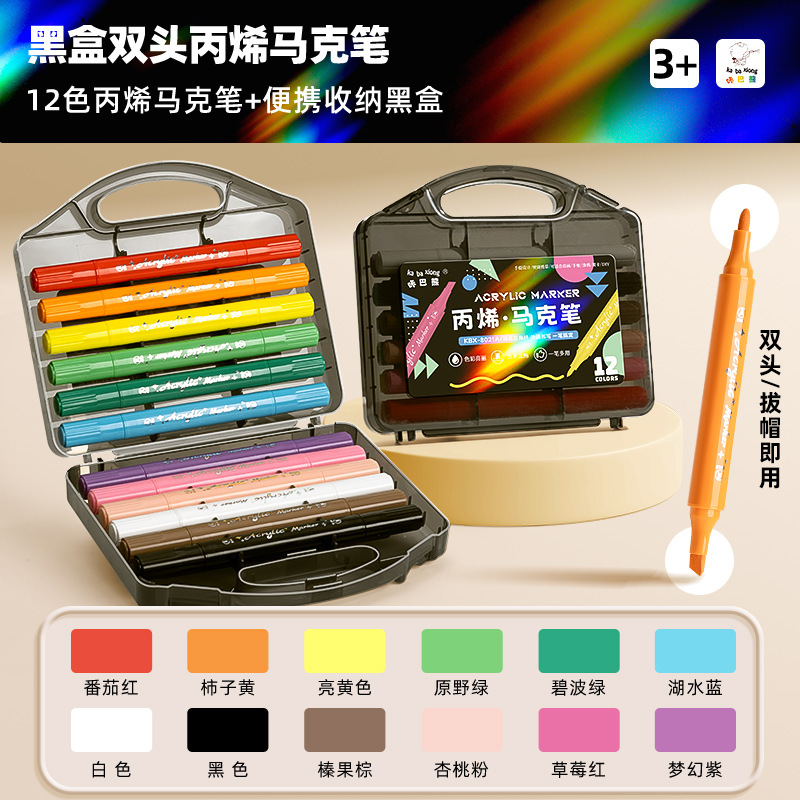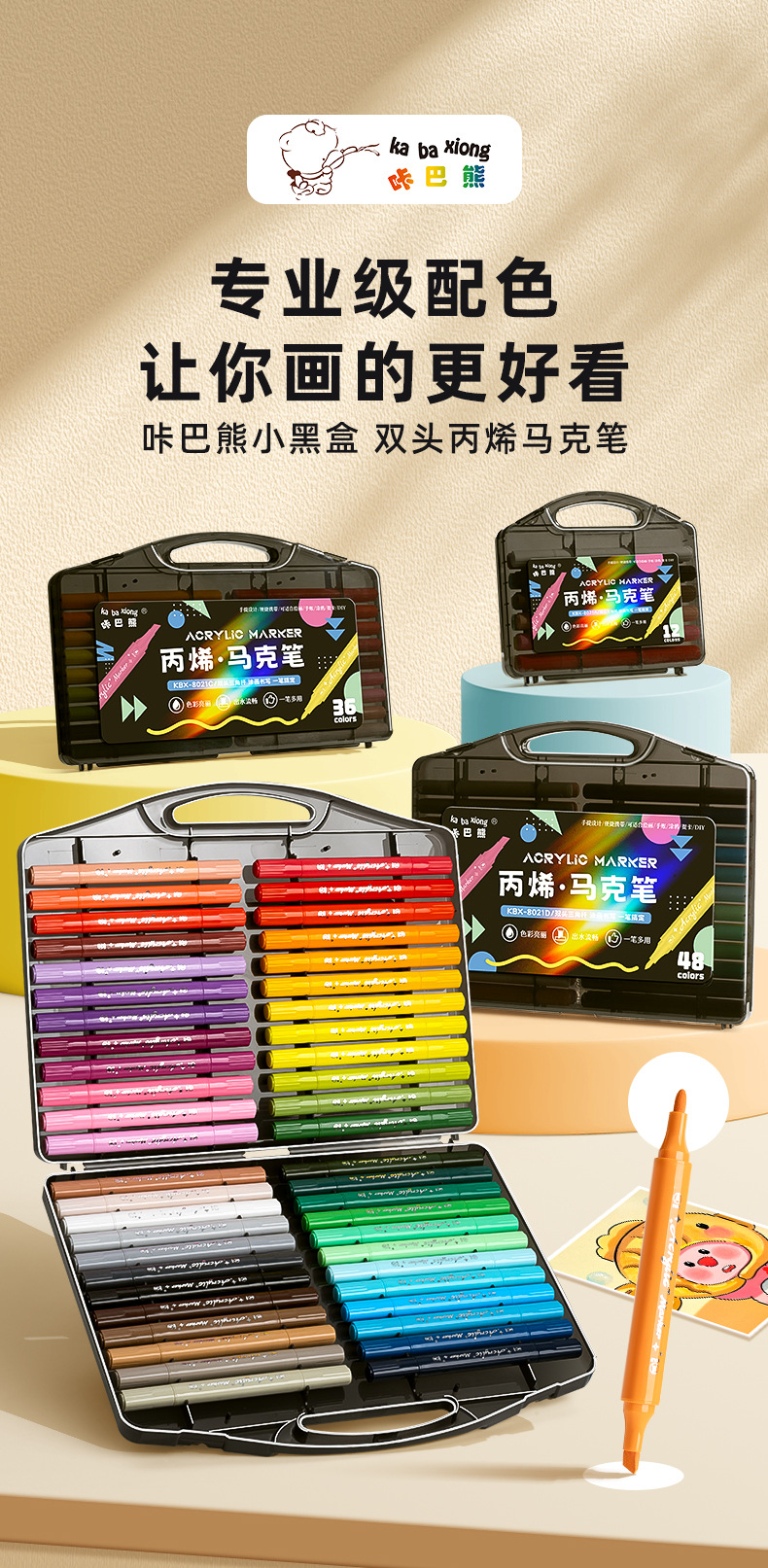 咔巴熊双头专业丙烯马克笔儿童防水手绘diy多色专用绘画笔水彩笔