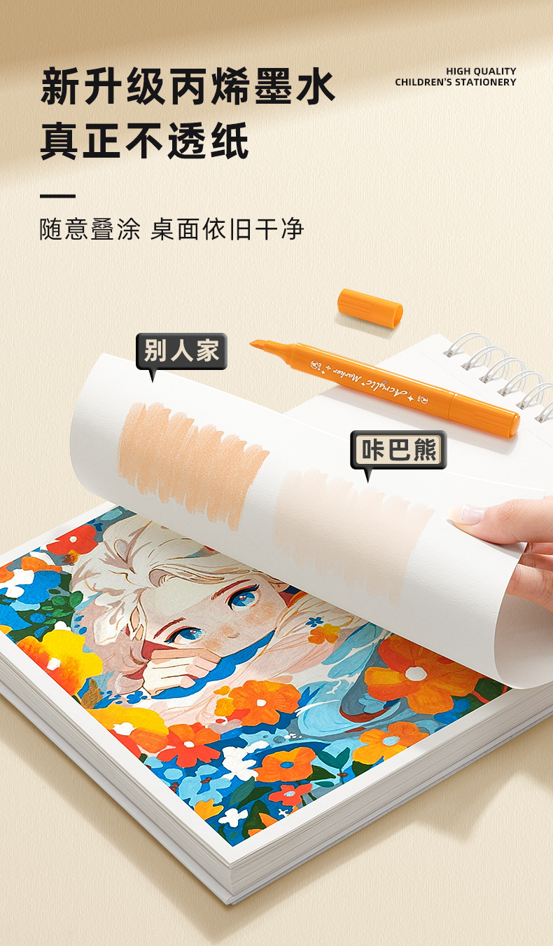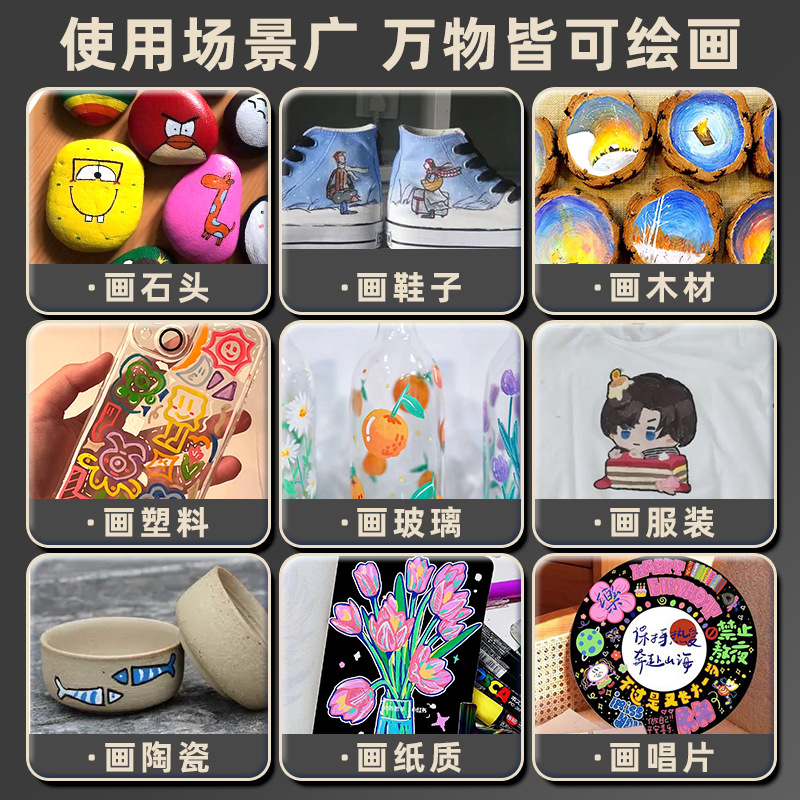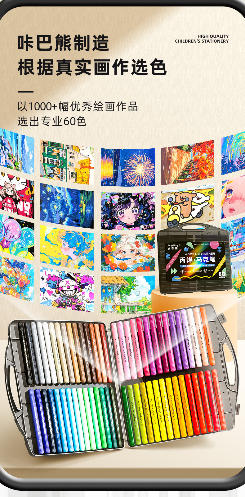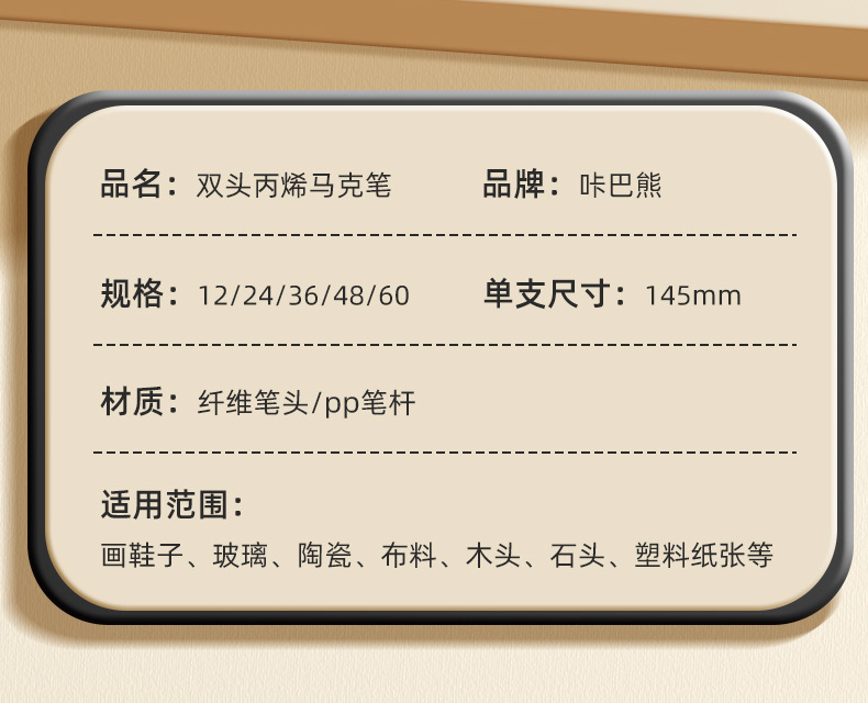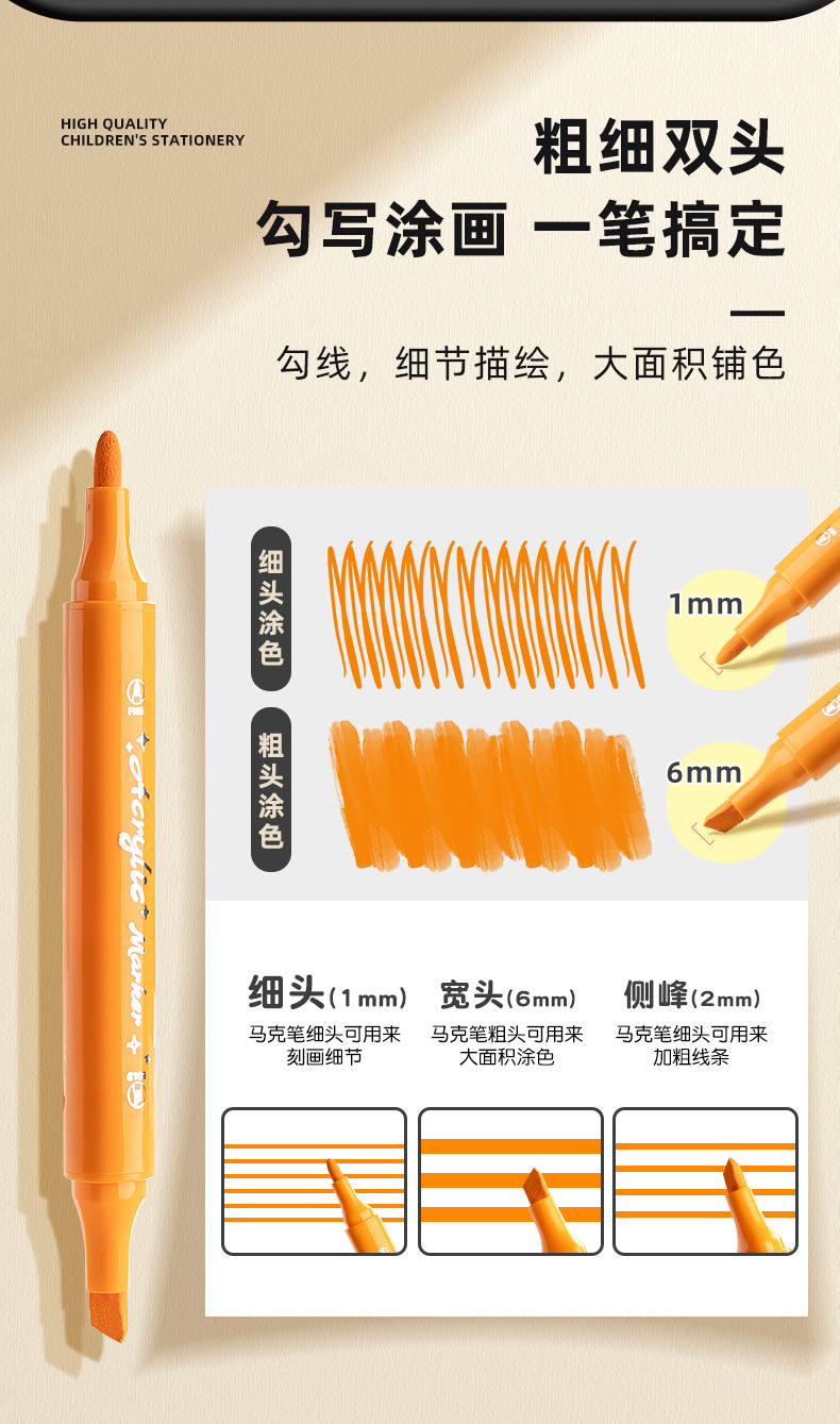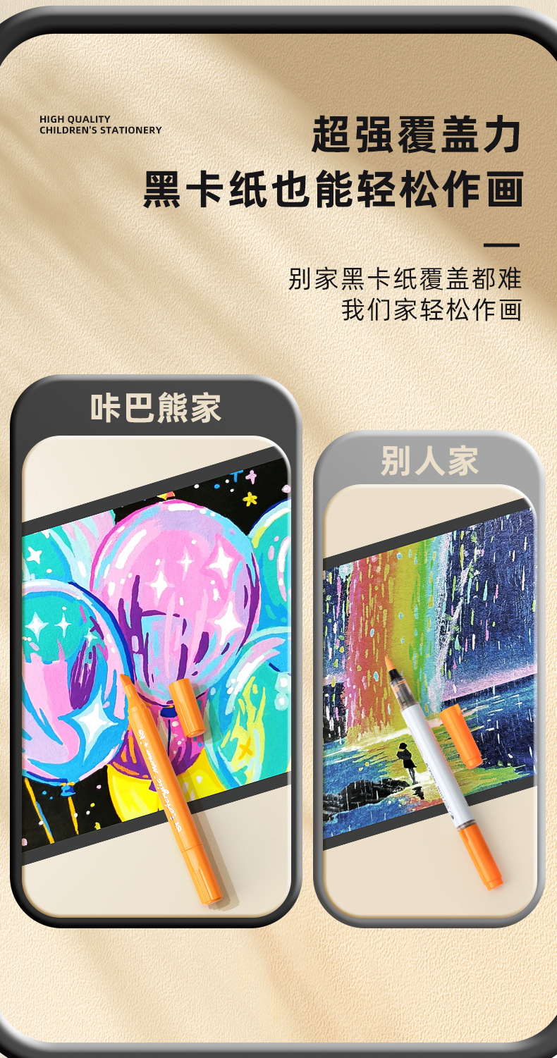 咔巴熊双头专业丙烯马克笔儿童防水手绘diy多色专用绘画笔水彩笔