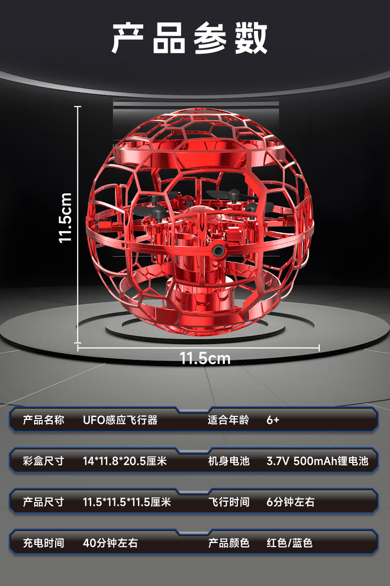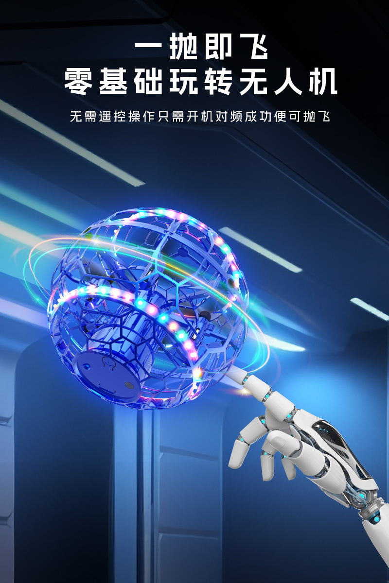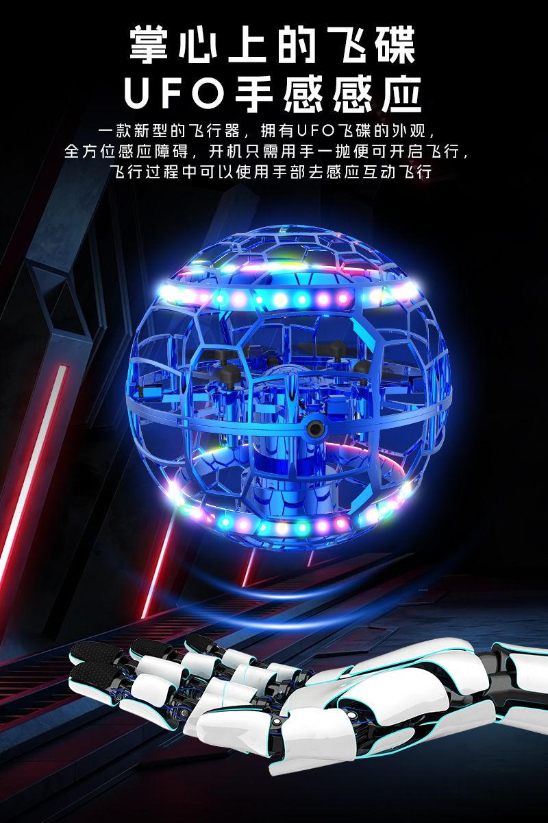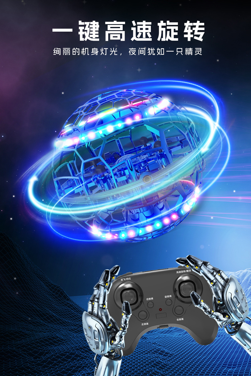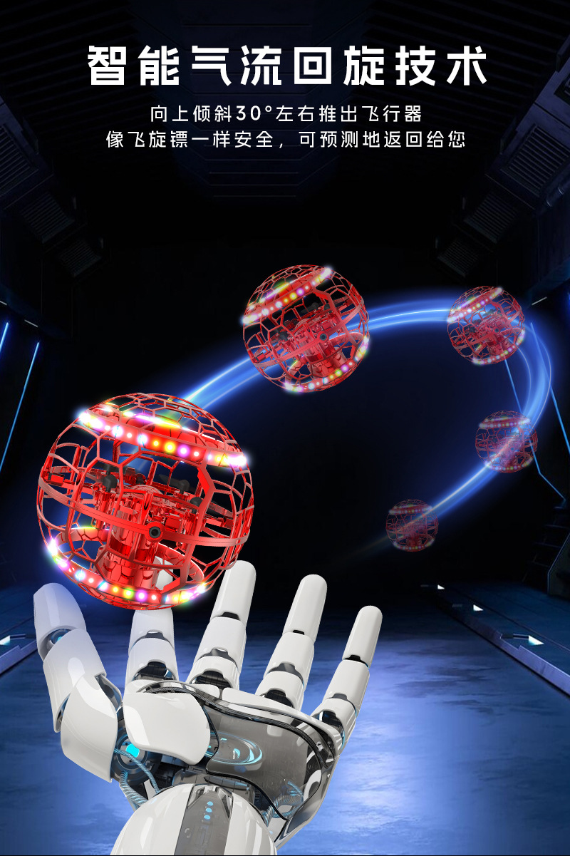 Q8圆球手势感应互动飞行器UFO手抛回旋飞碟中小学比赛遥控无人机