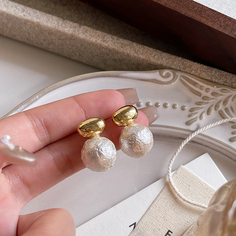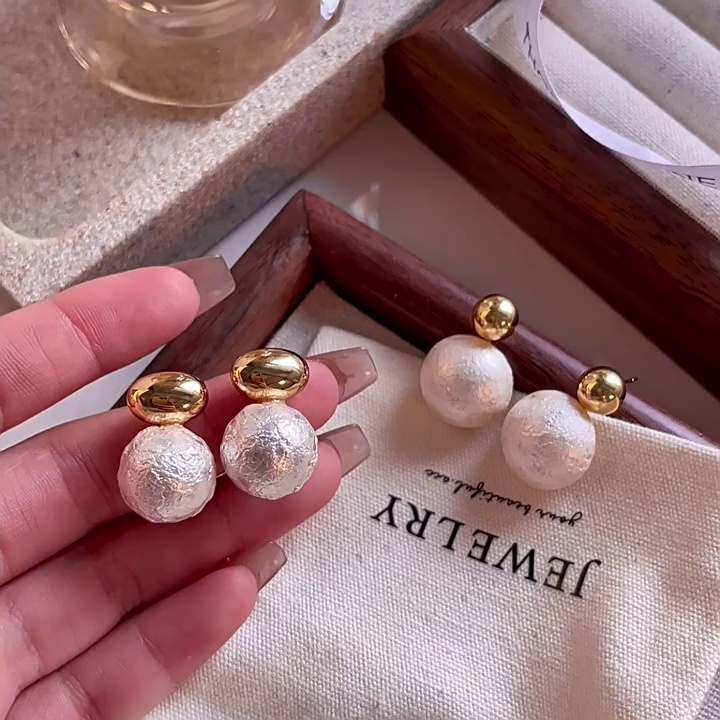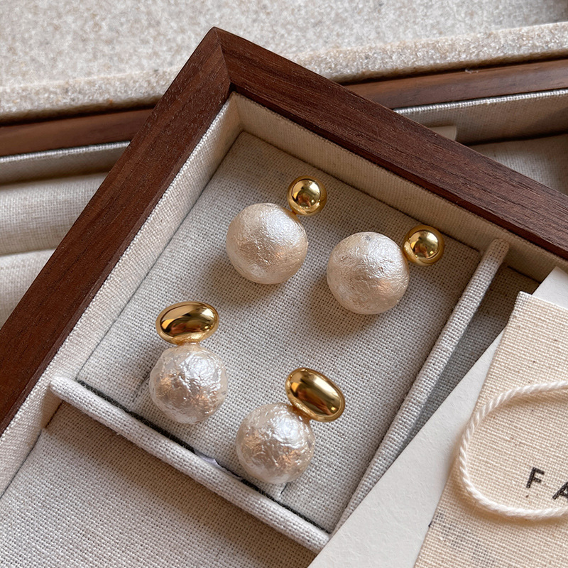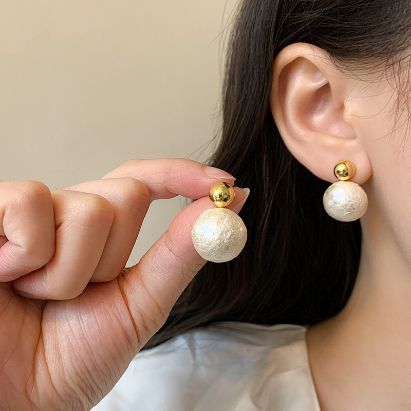 真金电镀小豆豆耳钉网红同款耳饰品S925纯银针棉花珍珠耳环女批发