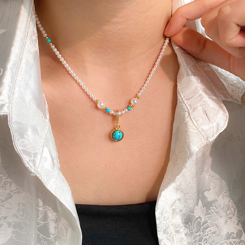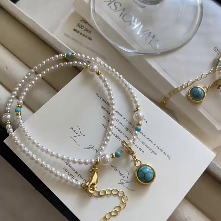 天然绿松石吊坠锁骨链轻奢小众高级感S家澳白珍珠项链女气质颈链