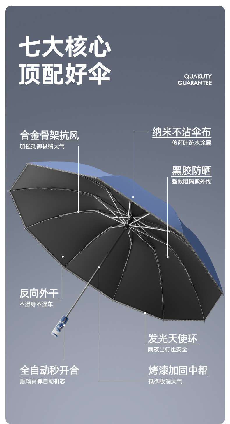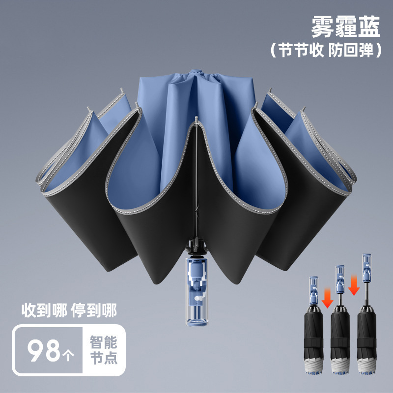 10骨全自动反向安全节节收防回弹晴雨伞遮阳防晒雨伞男厂家现货批
