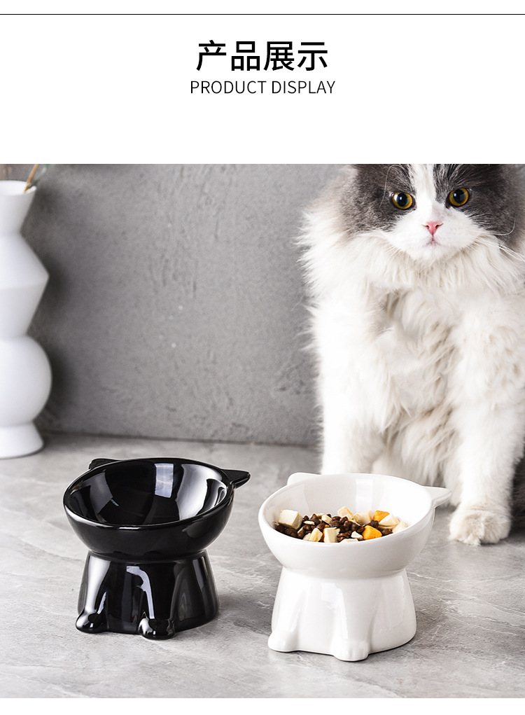 黑碗猫咪黑色猫碗猫食盆陶瓷宠物喝水碗饭碗高脚斜口碗防打翻护颈