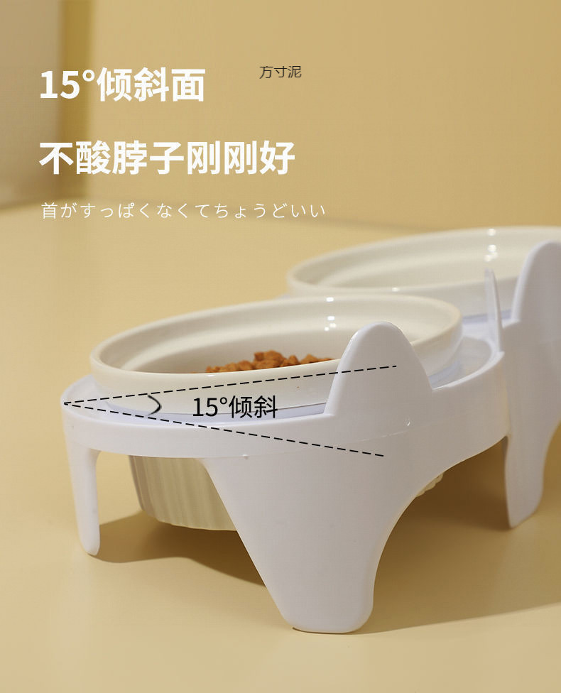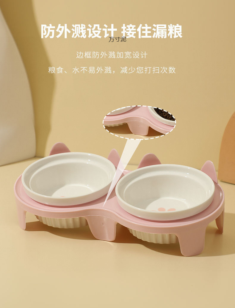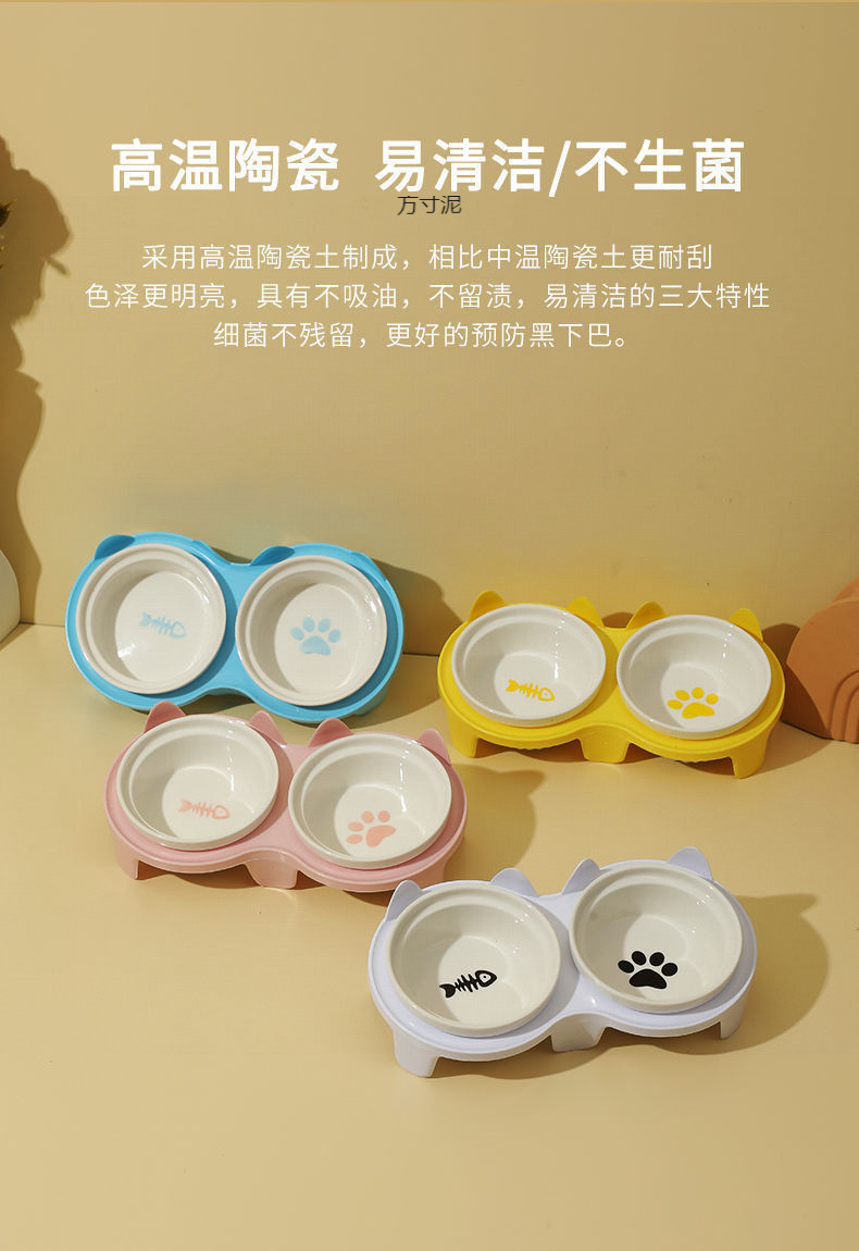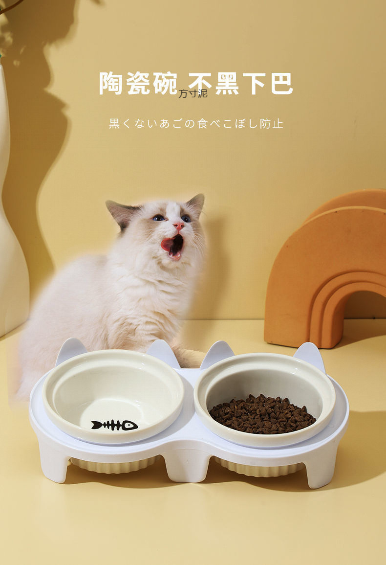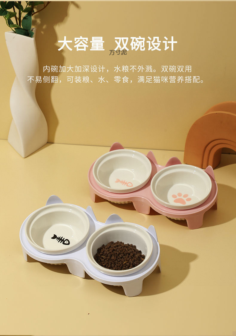 猫碗陶瓷猫食盆猫咪饭碗双碗斜口喝水碗狗狗碗保护防打翻用品批发