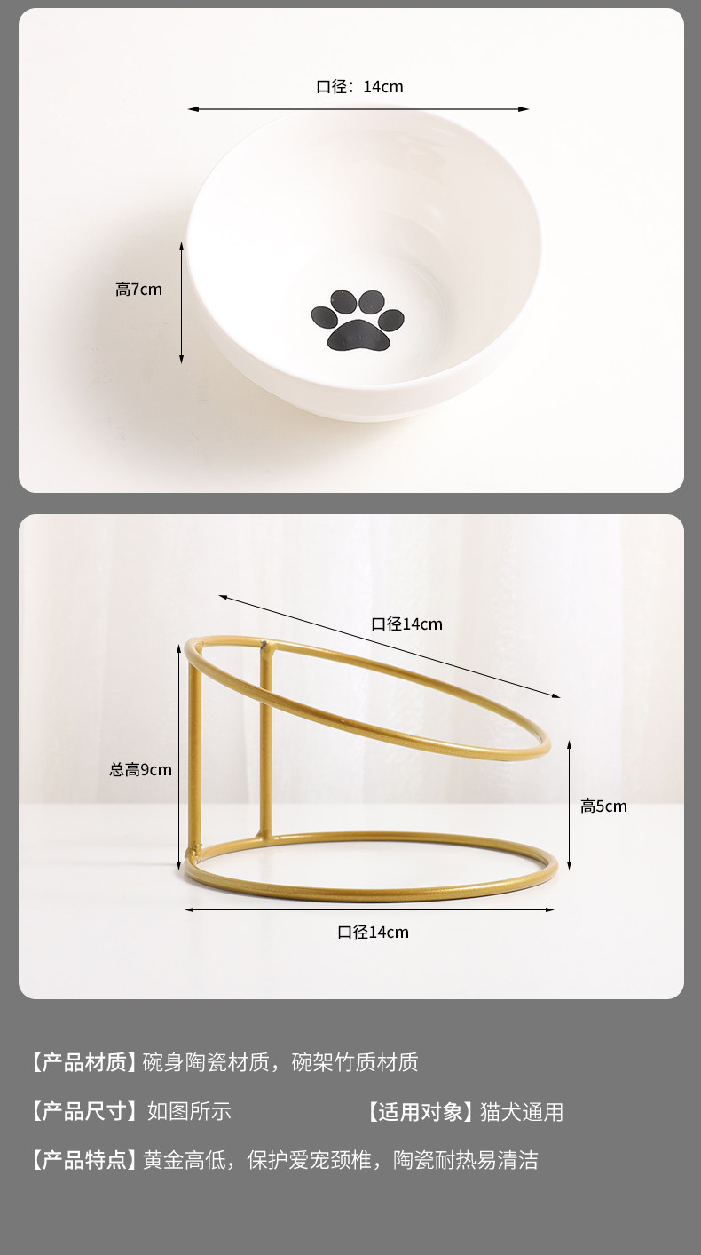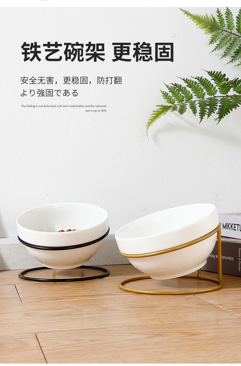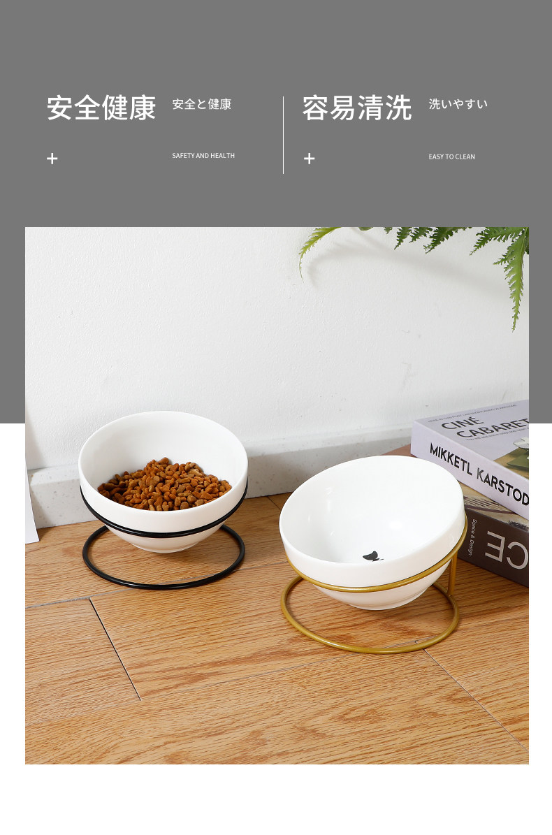 倾斜宠物碗架水碗猫碗陶瓷猫碗含铁架猫食盆保护颈椎卡通猫咪餐桌