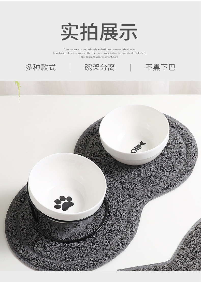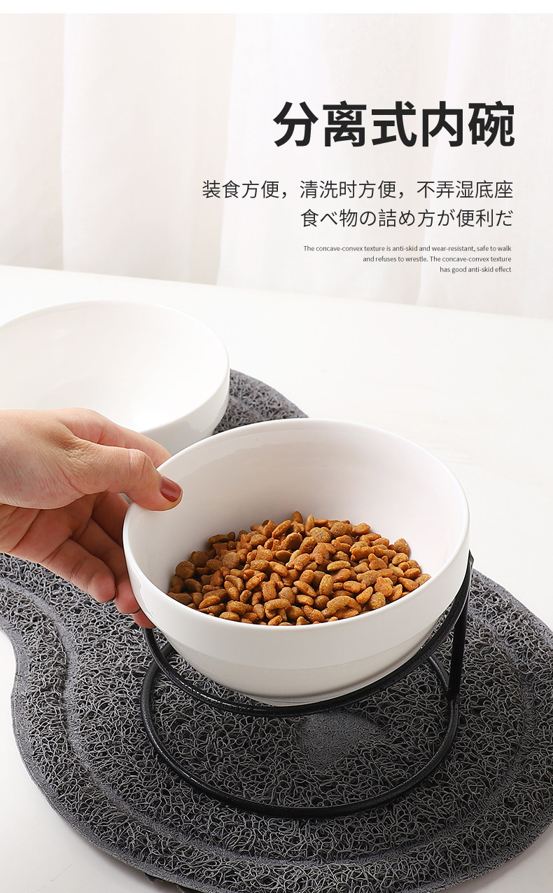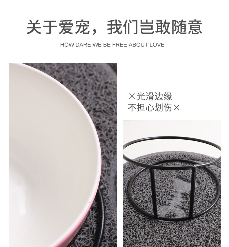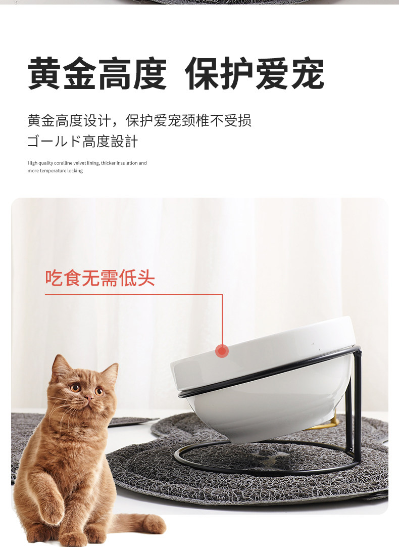 倾斜宠物碗架水碗猫碗陶瓷猫碗含铁架猫食盆保护颈椎卡通猫咪餐桌