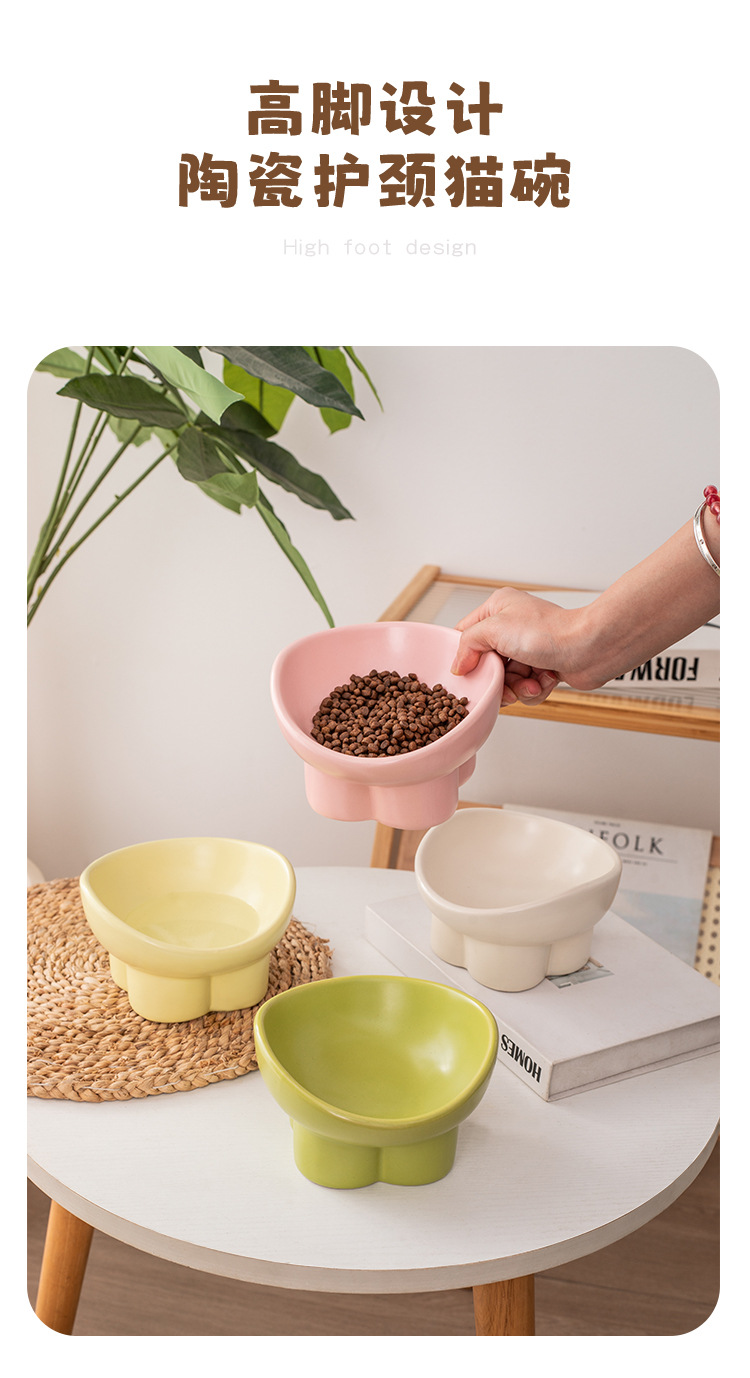 猫碗陶瓷粮碗水碗保护颈椎高脚斜口猫咪饮水碗宠物碗狗狗饭碗食盆