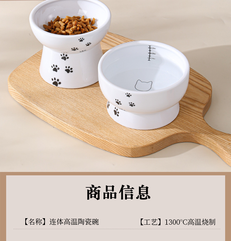 零食罐头猫盆碗 防打翻宠物猫咪喝水碗 保护颈椎高脚陶瓷猫粮碗