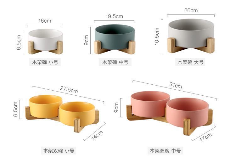 猫碗猫咪陶瓷碗狗狗水碗双碗碗架保护颈椎宠物猫粮碗猫食盆防打翻